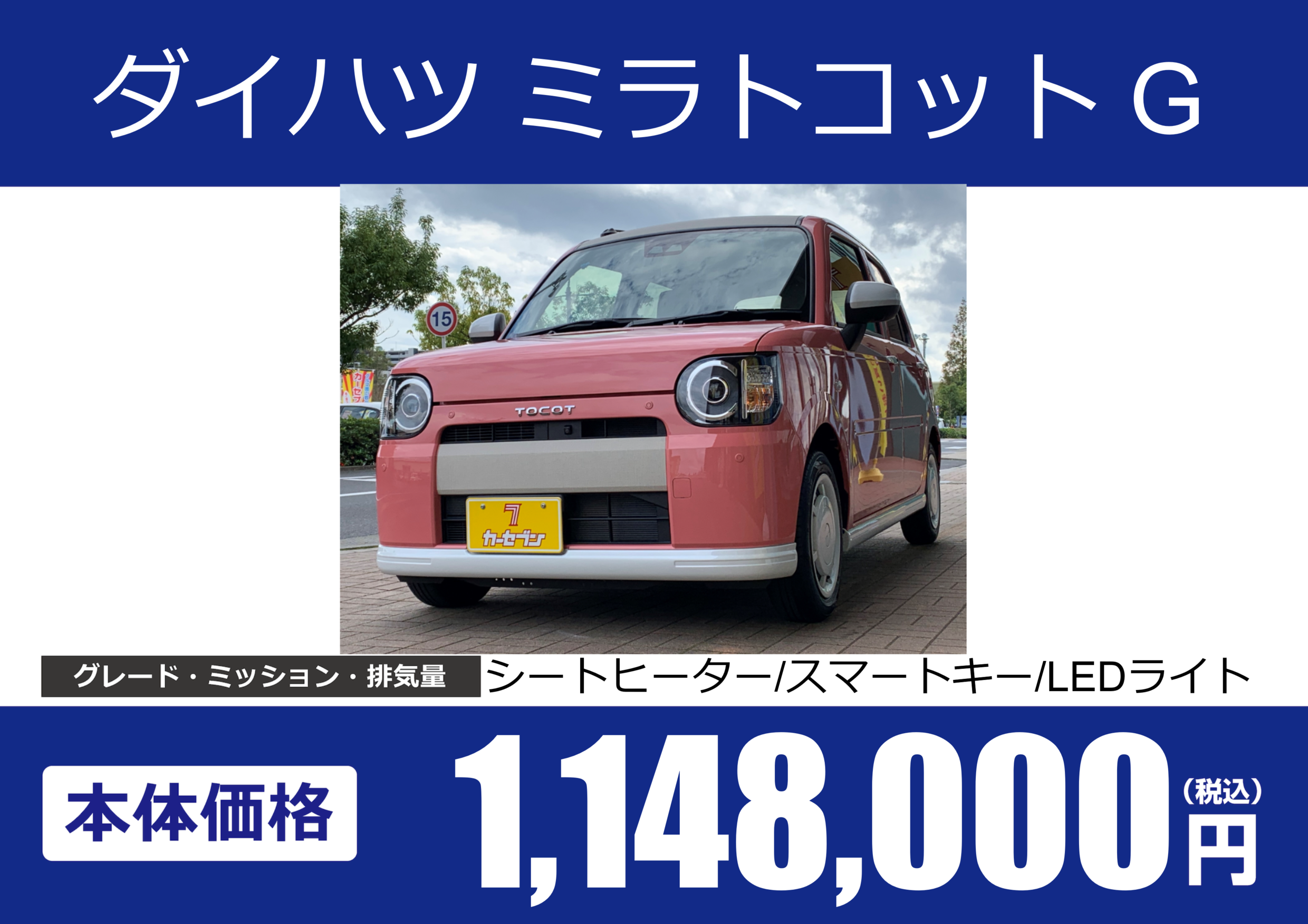 | 車名 | ダイハツ ミラトコット G | グレード ミッション 排気量 |