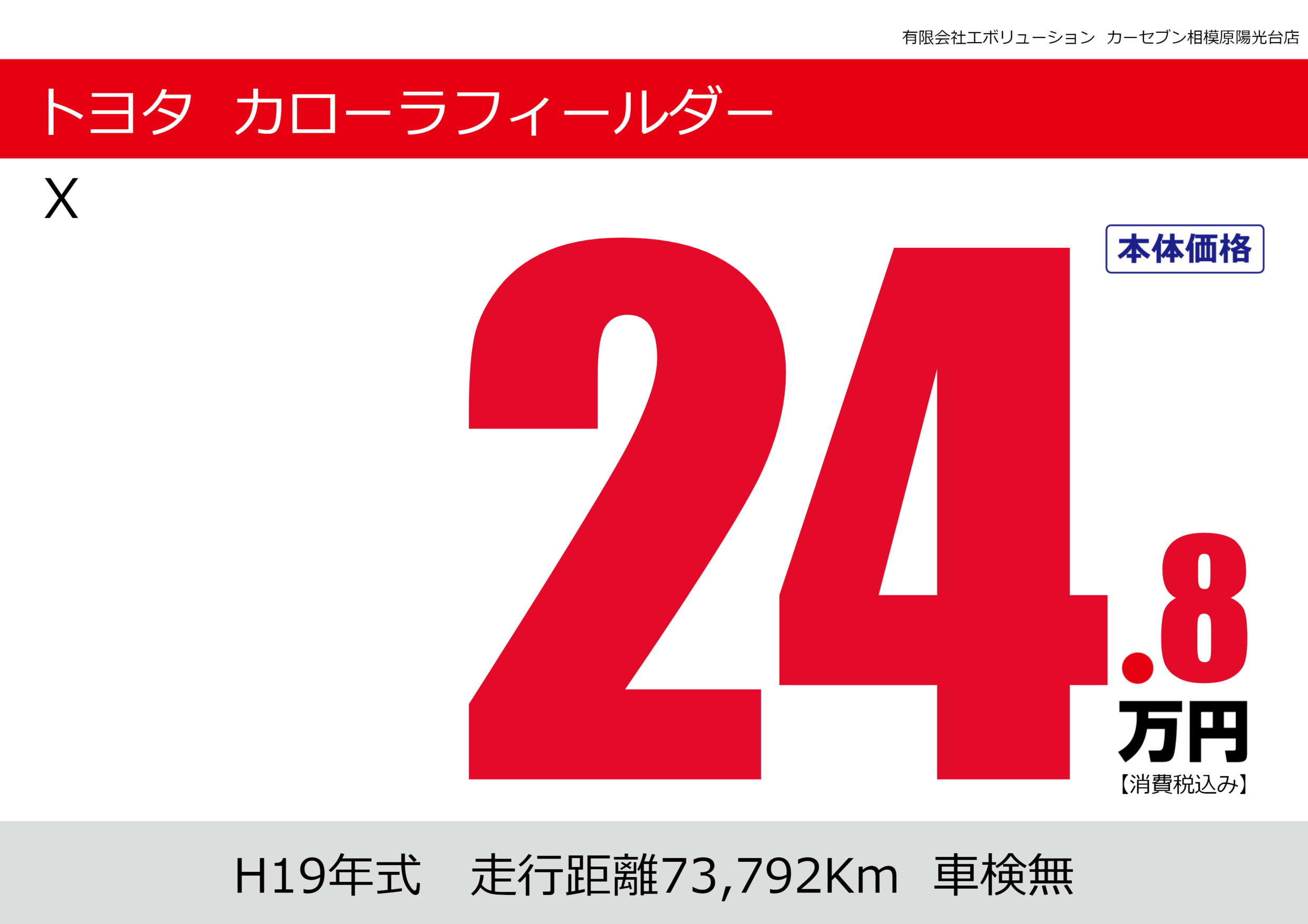 | 車名 | トヨタ カローラフィールダー | グレード ミッション 排気量 |