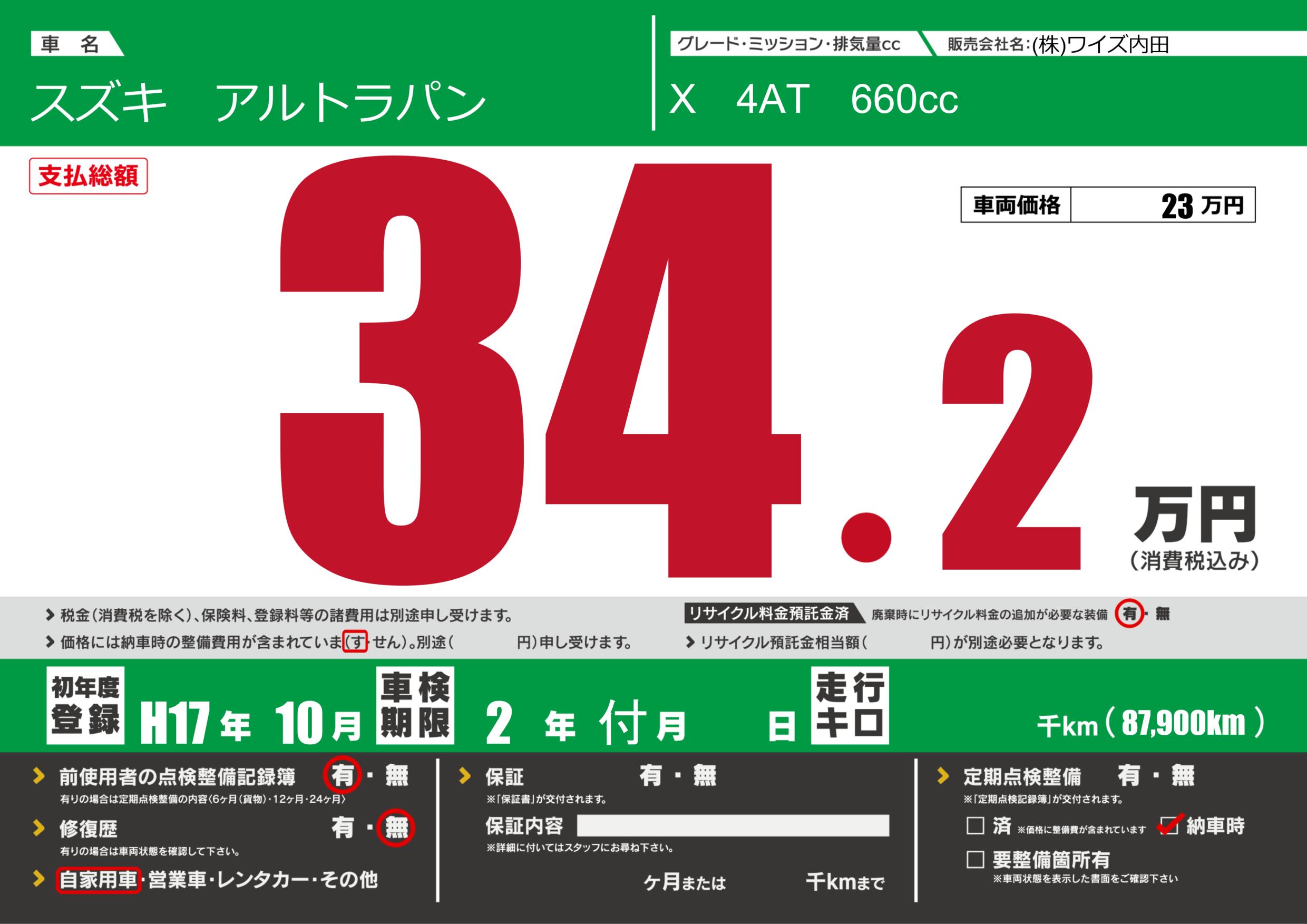 あり | 車検制限 | 2年付月---月 |