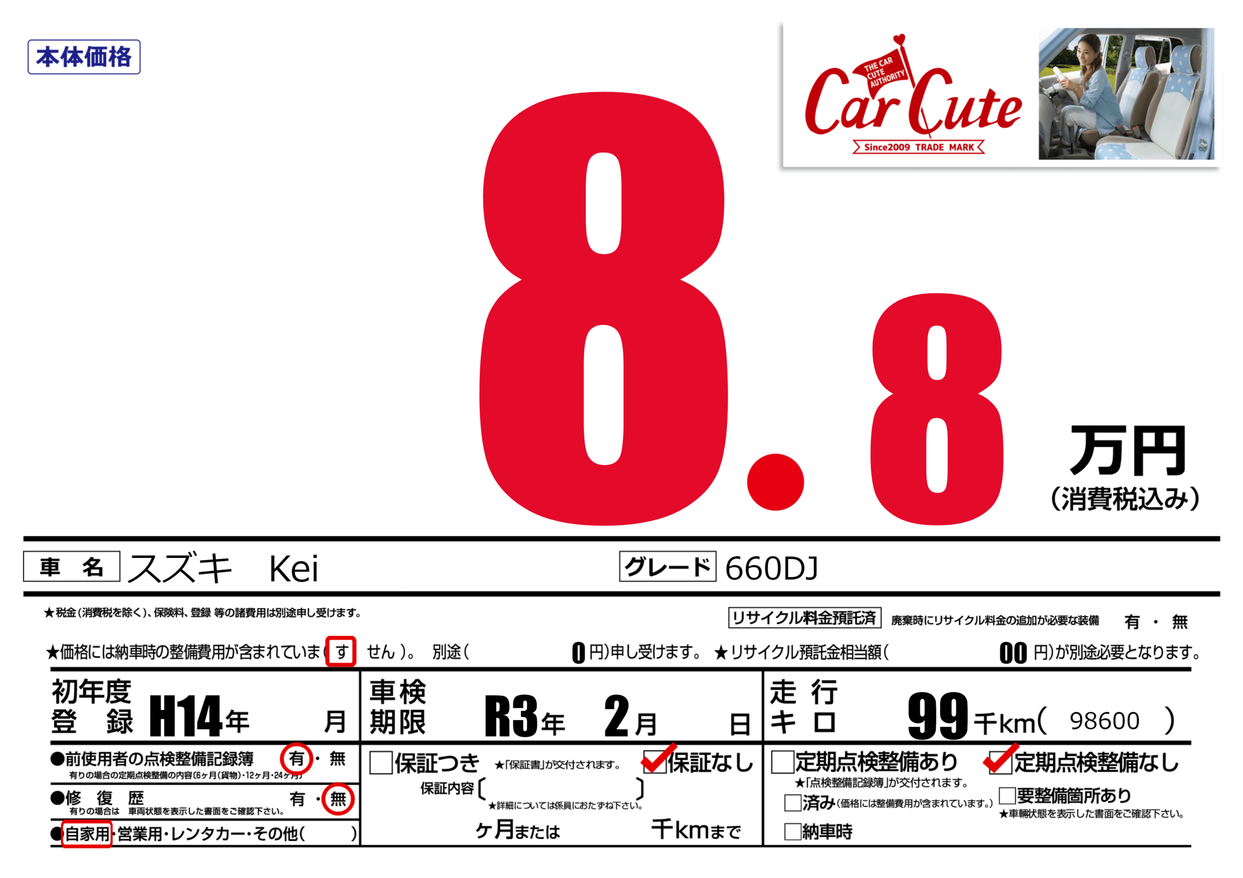 | 車検制限 | R3年 2月 - 日 | ||