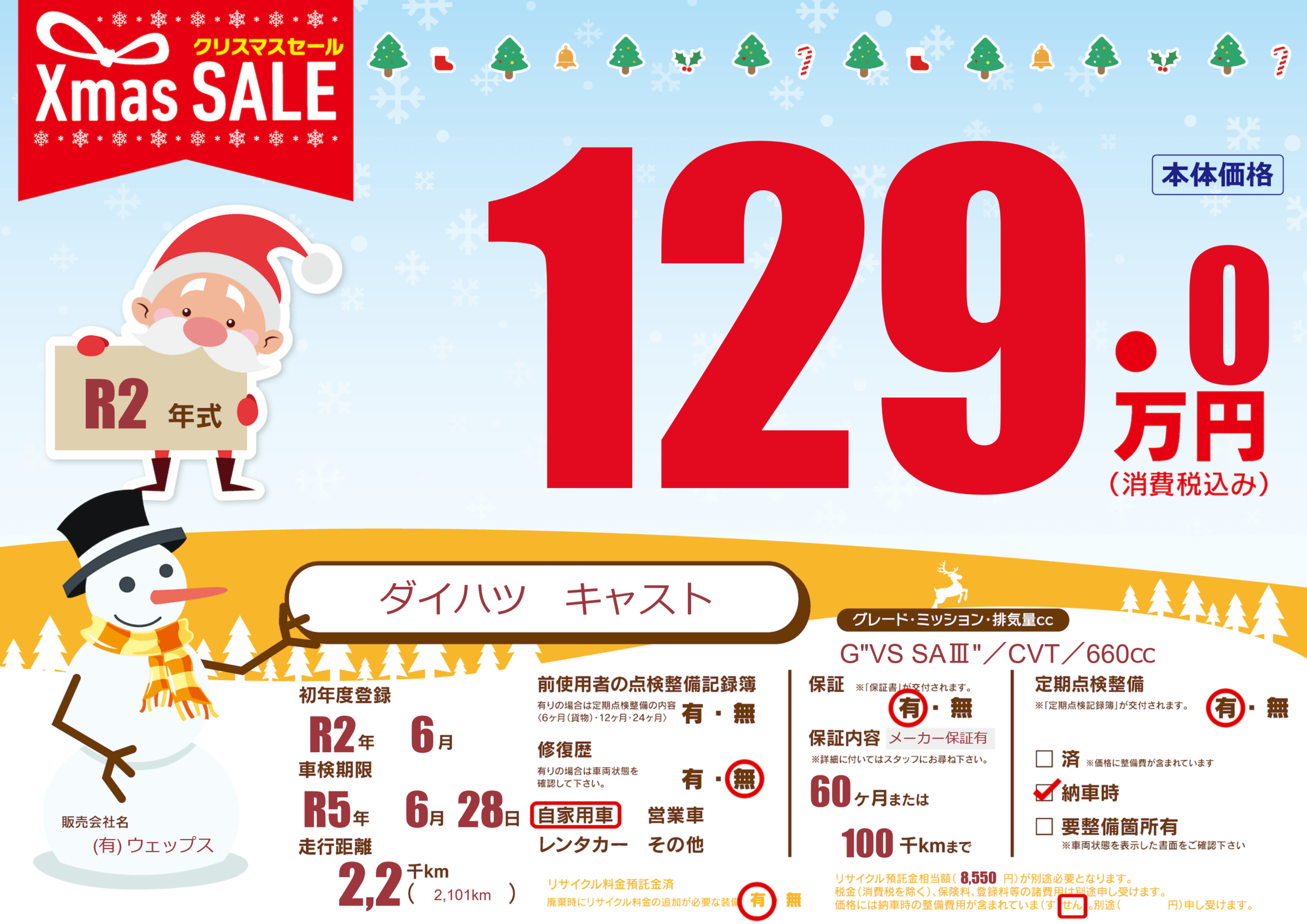 | 定期点検整備 | 定期点検整備あり 納車時あり | ||
