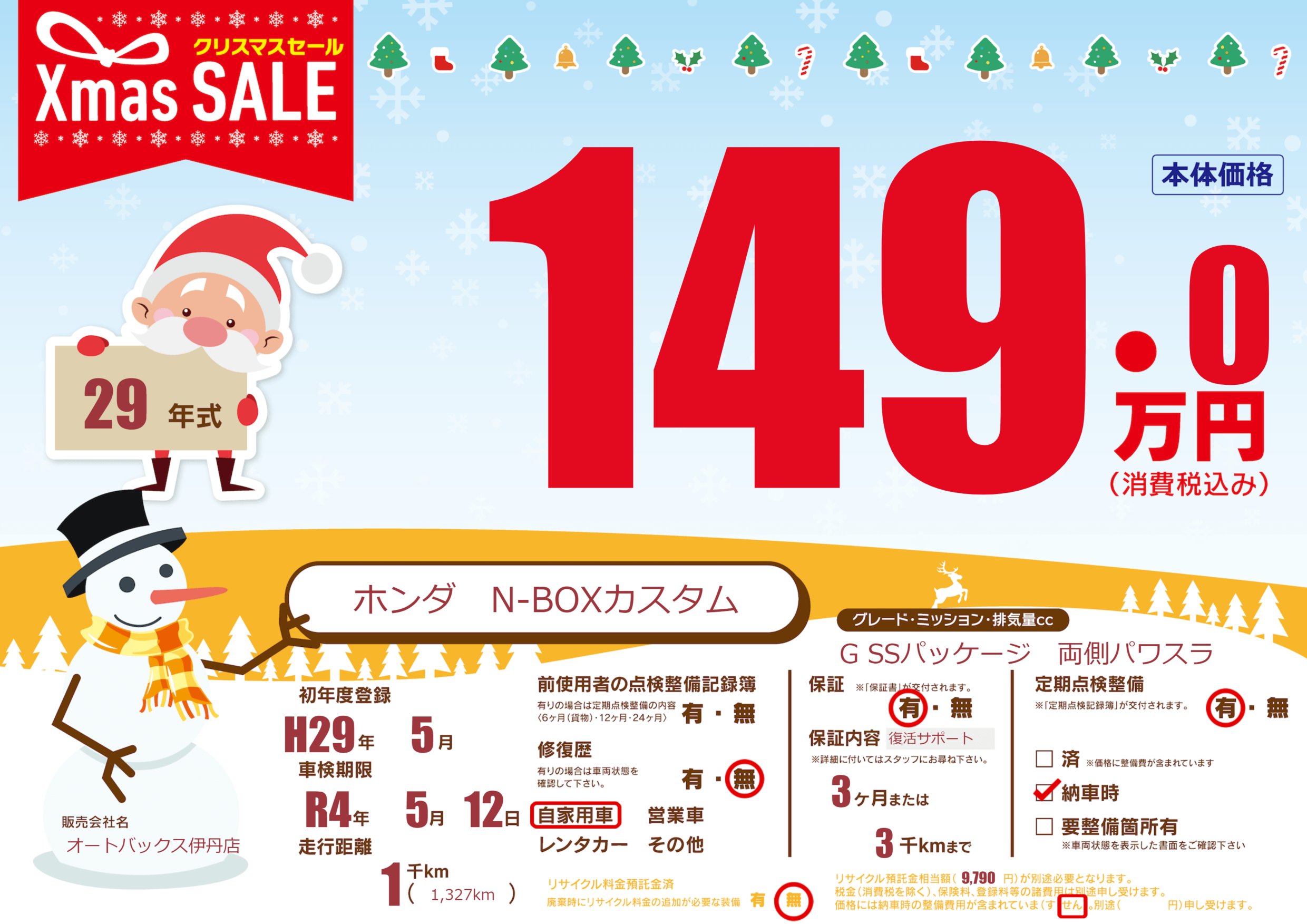 | 定期点検整備 | 定期点検整備あり 納車時あり | ||