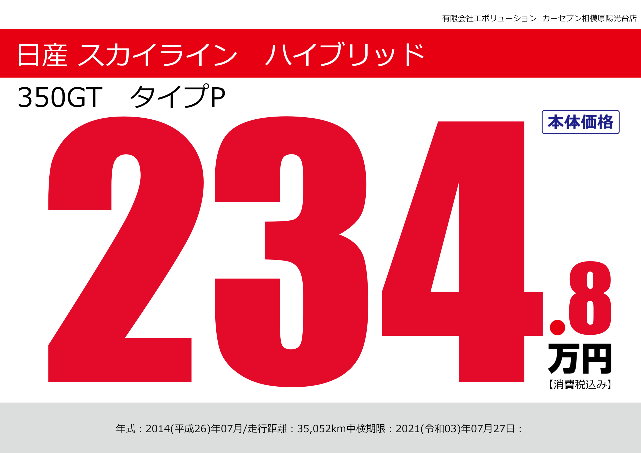 | 車名 | 日産 スカイライン ハイブリッド | グレード ミッション 排気量 |