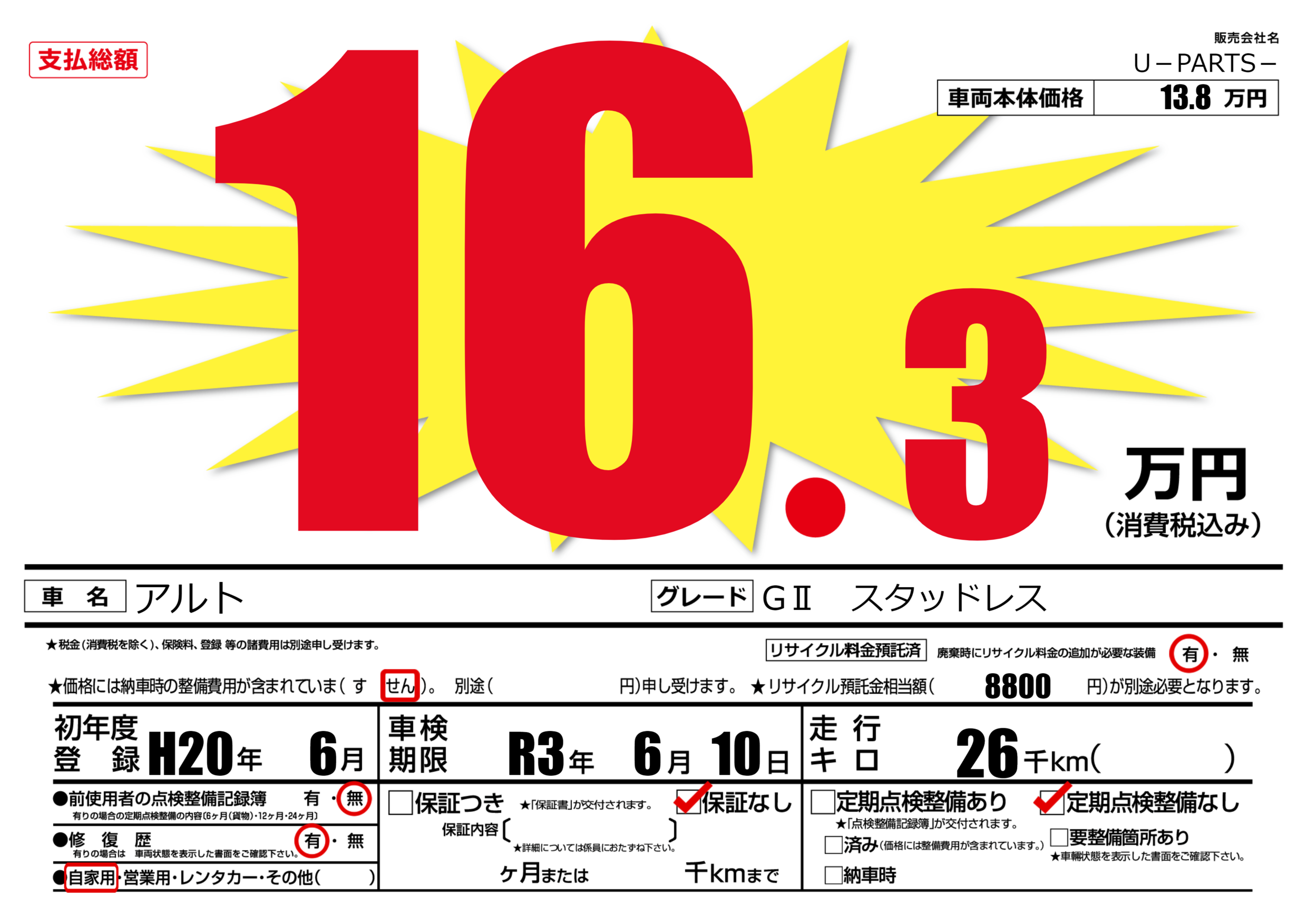 なし | 車検制限 | R3年6月10月 |