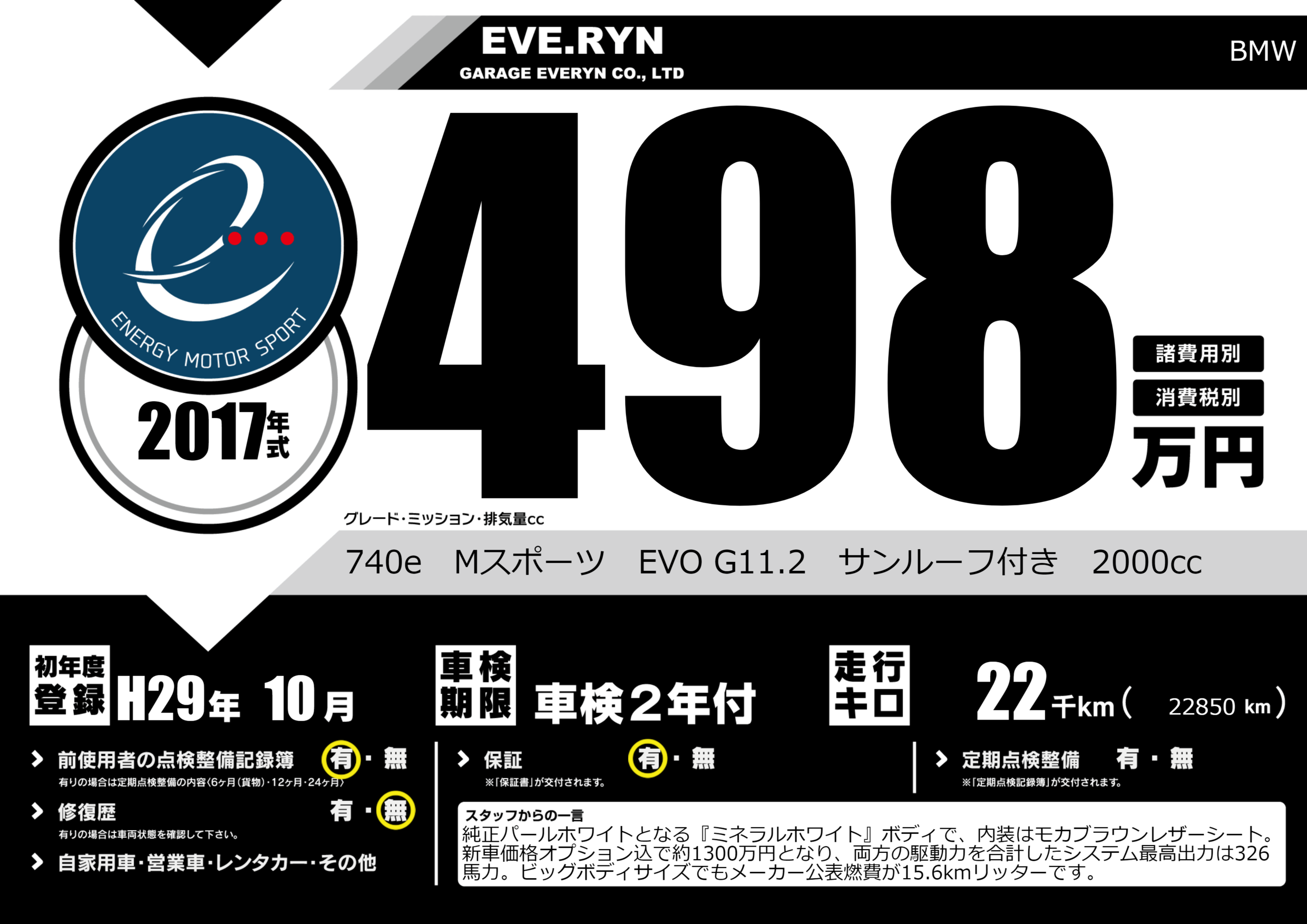 740e Mスポーツ EVO G11.2 サンルーフ付き 2000cc |