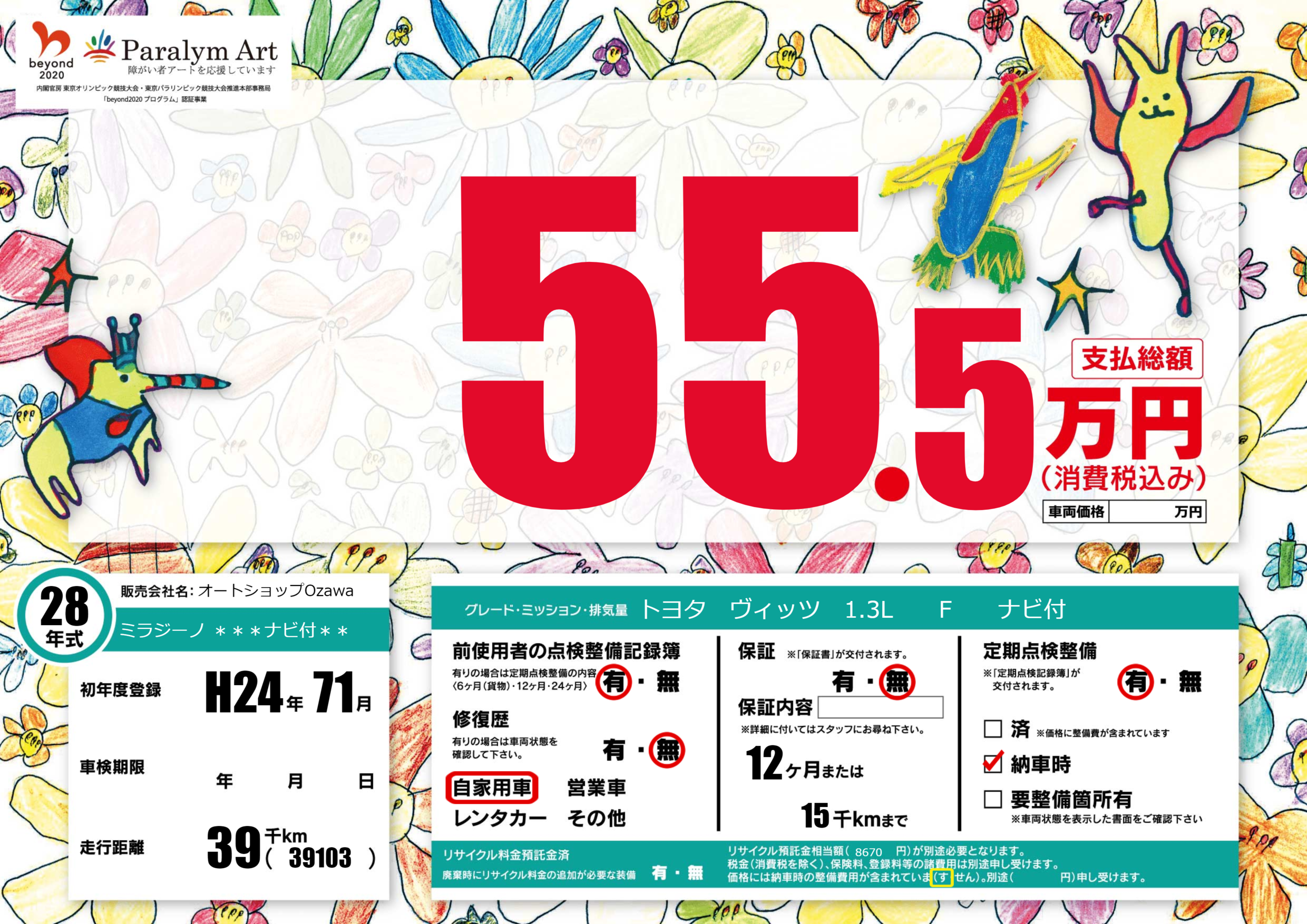 | 走行キロ | 3.9万km | 初年度登録 | H24年71月 |