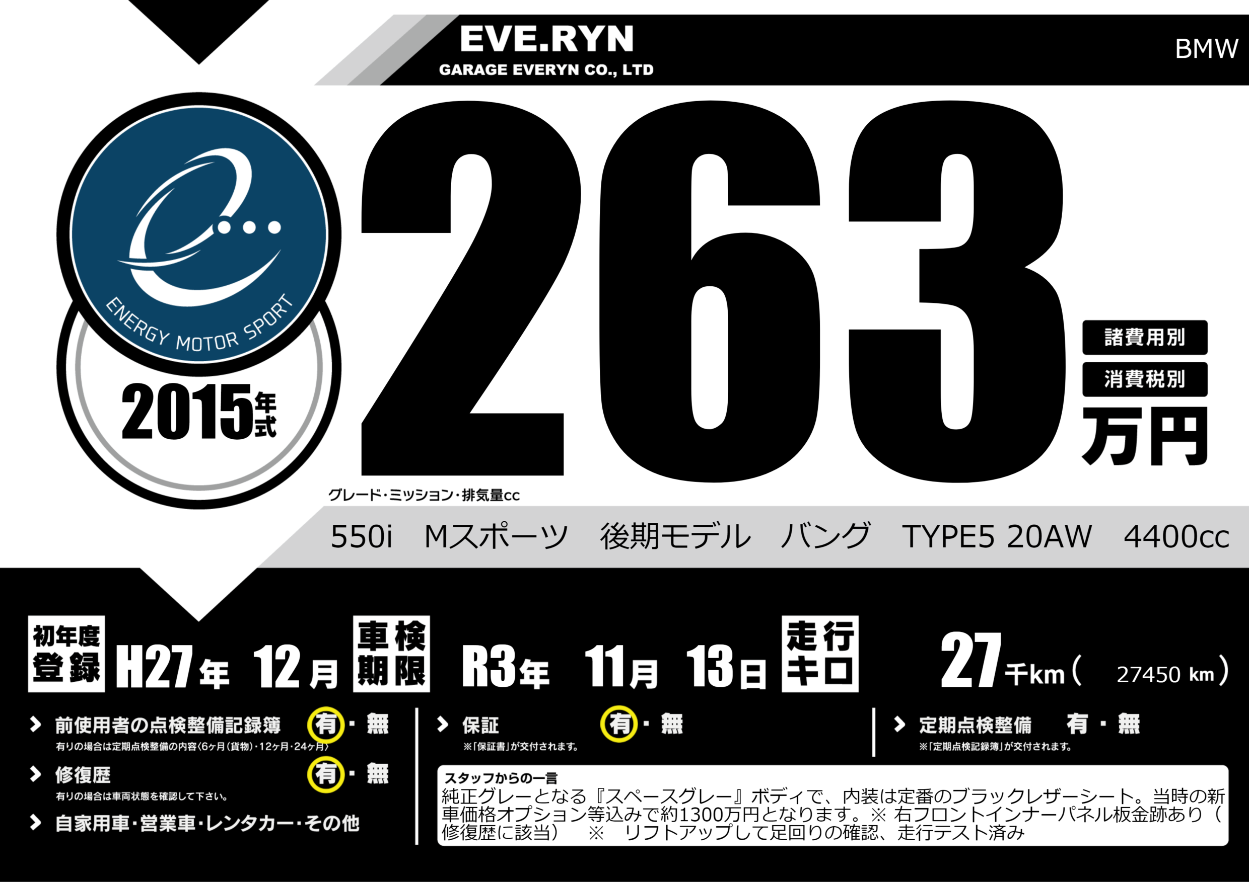 550i Mスポーツ 後期モデル バング TYPE5 20AW 4400cc |