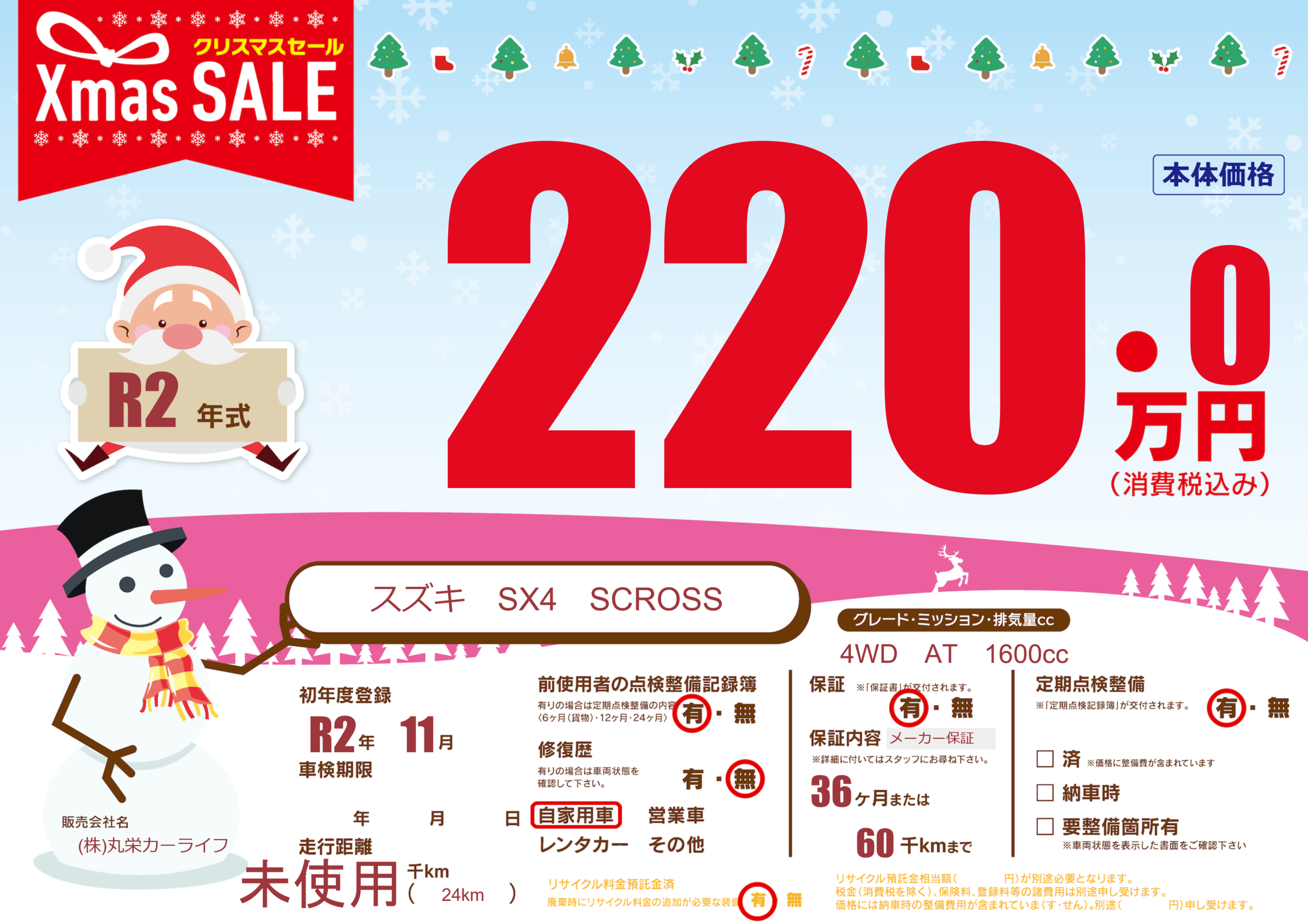 | 走行キロ | - | 初年度登録 | R2年11月 |