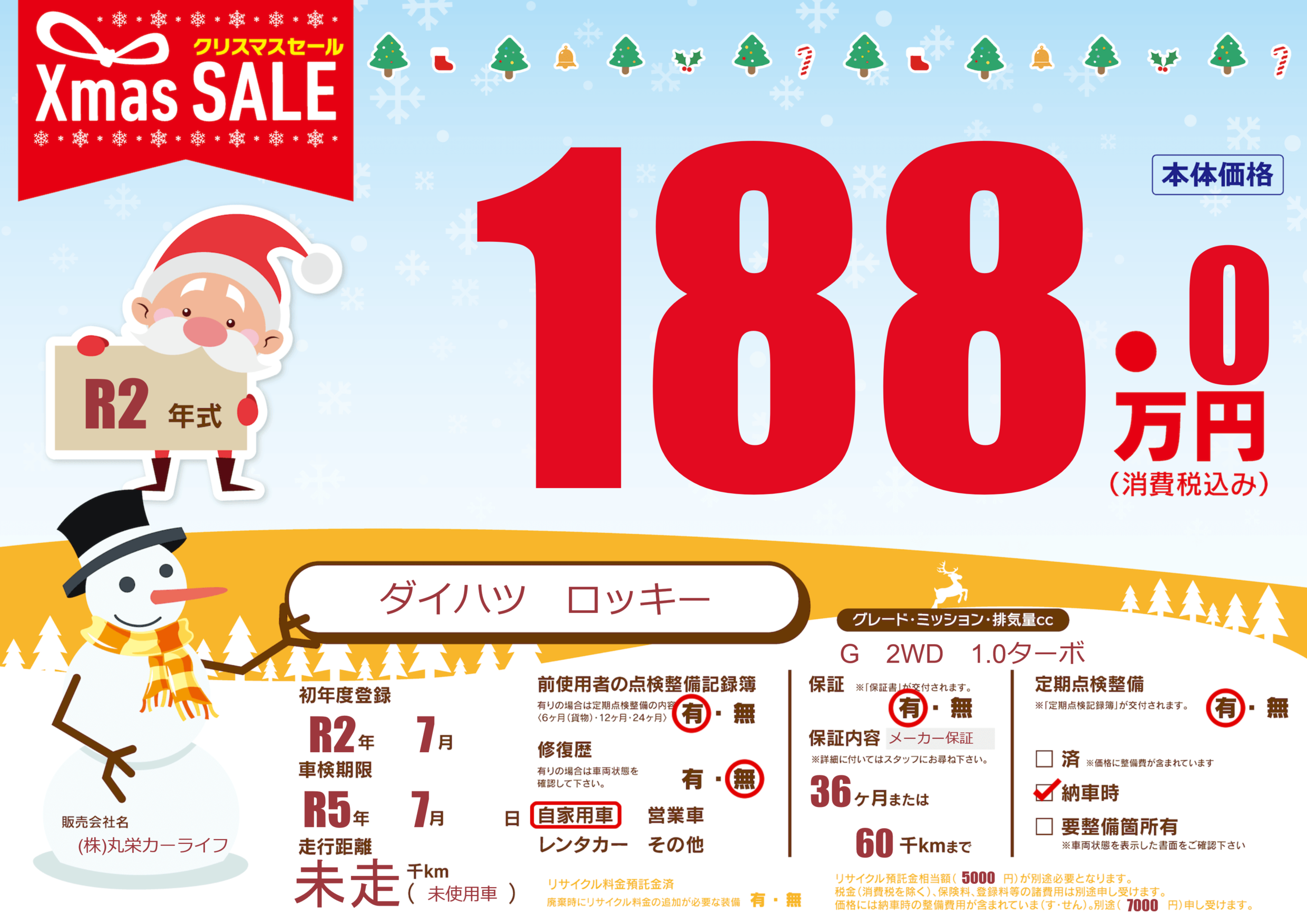 | 定期点検整備 | 定期点検整備あり 納車時あり | ||