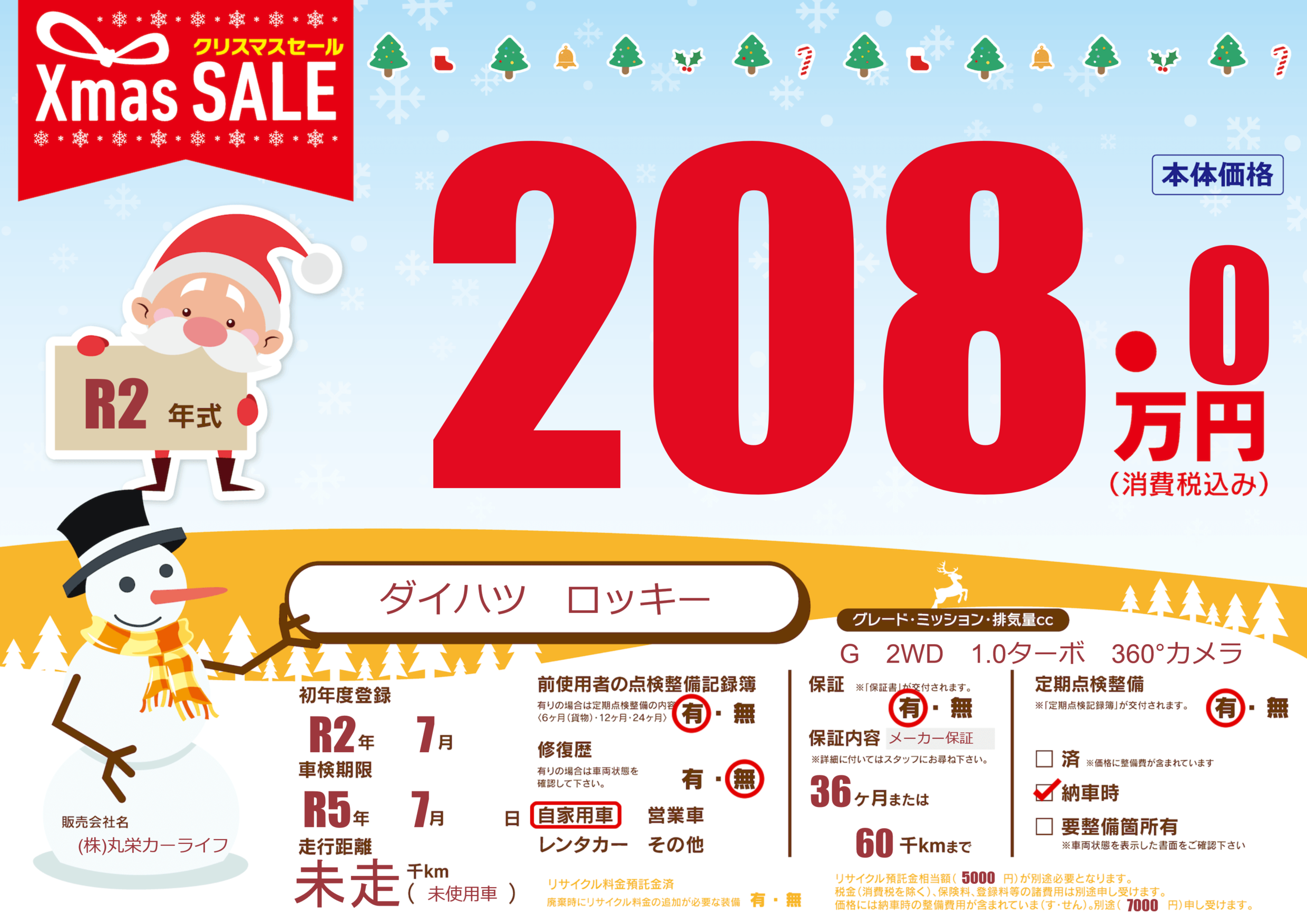 | 定期点検整備 | 定期点検整備あり 納車時あり | ||