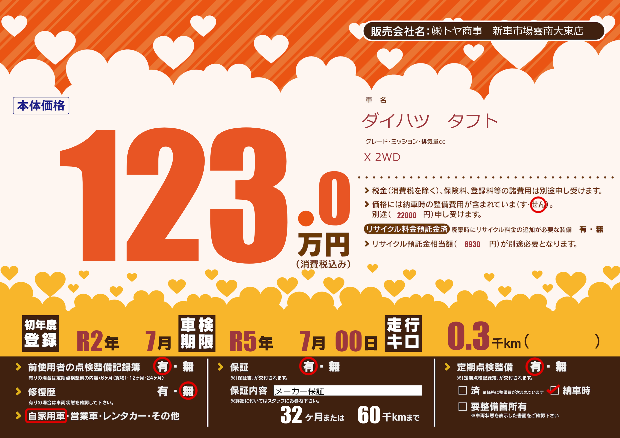 ㈱トヤ商事 新車市場雲南大東店の展示車