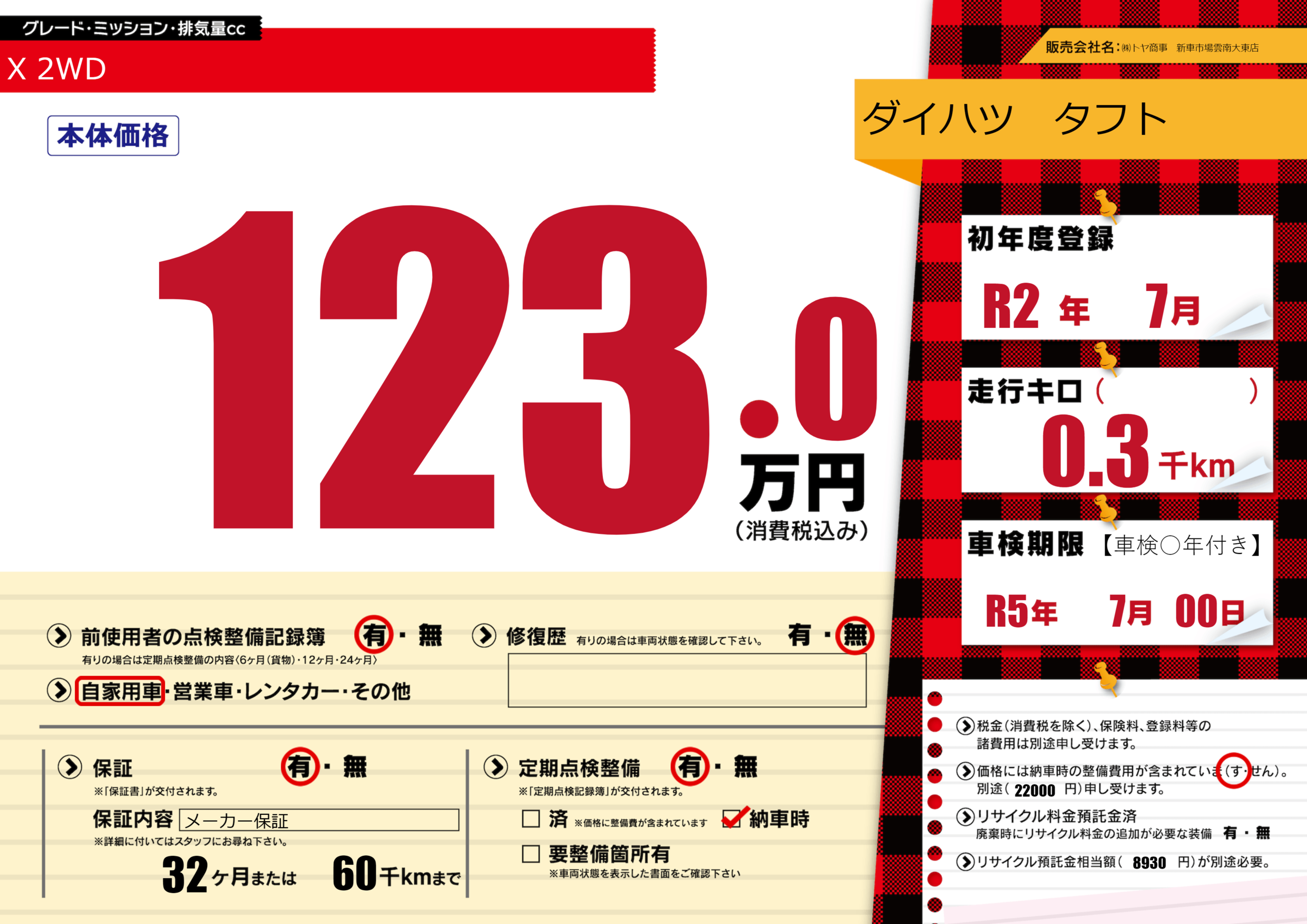 | 定期点検整備 | 定期点検整備あり 納車時あり | ||