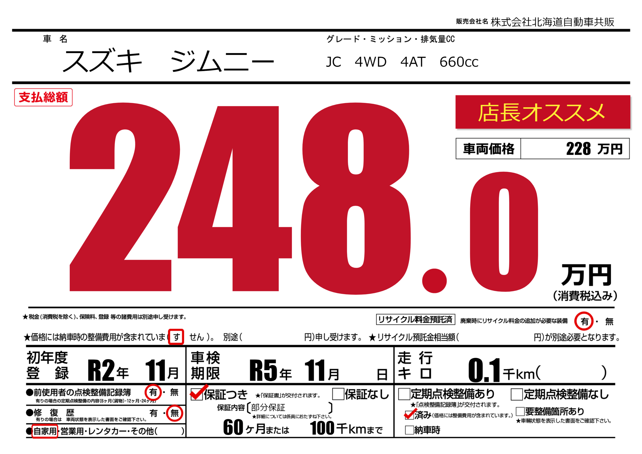 | 走行キロ | - | 初年度登録 | R2年11月 |
