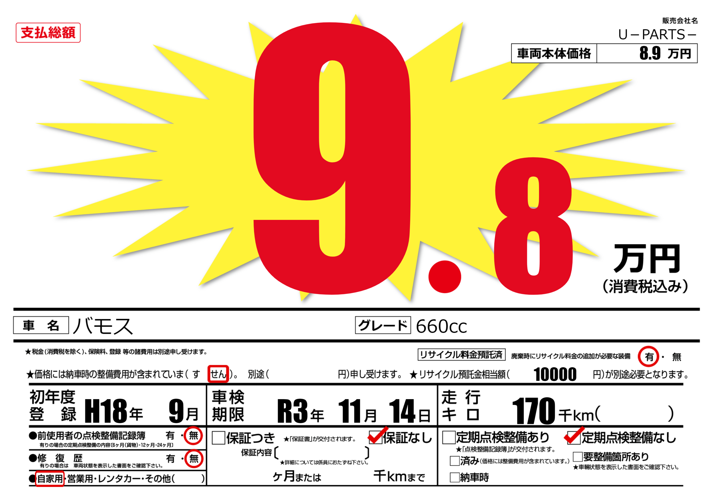 | 車名 | バモス | グレード ミッション 排気量 |