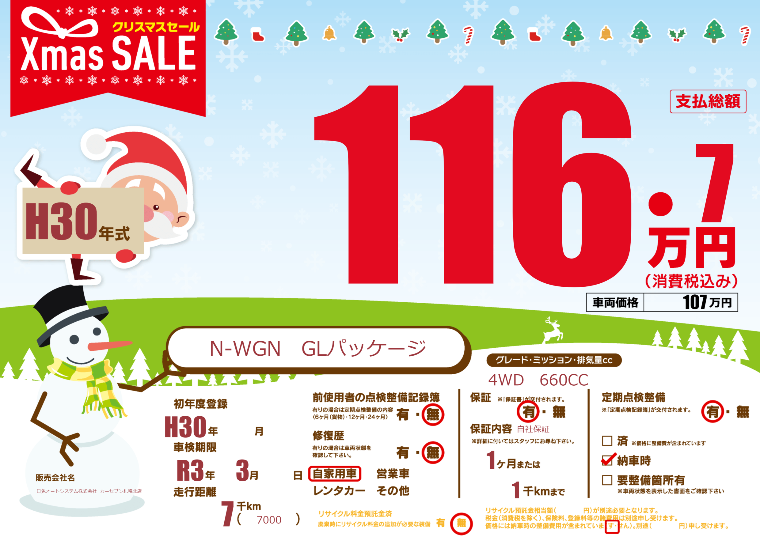 | 定期点検整備 | 定期点検整備あり 納車時あり | ||
