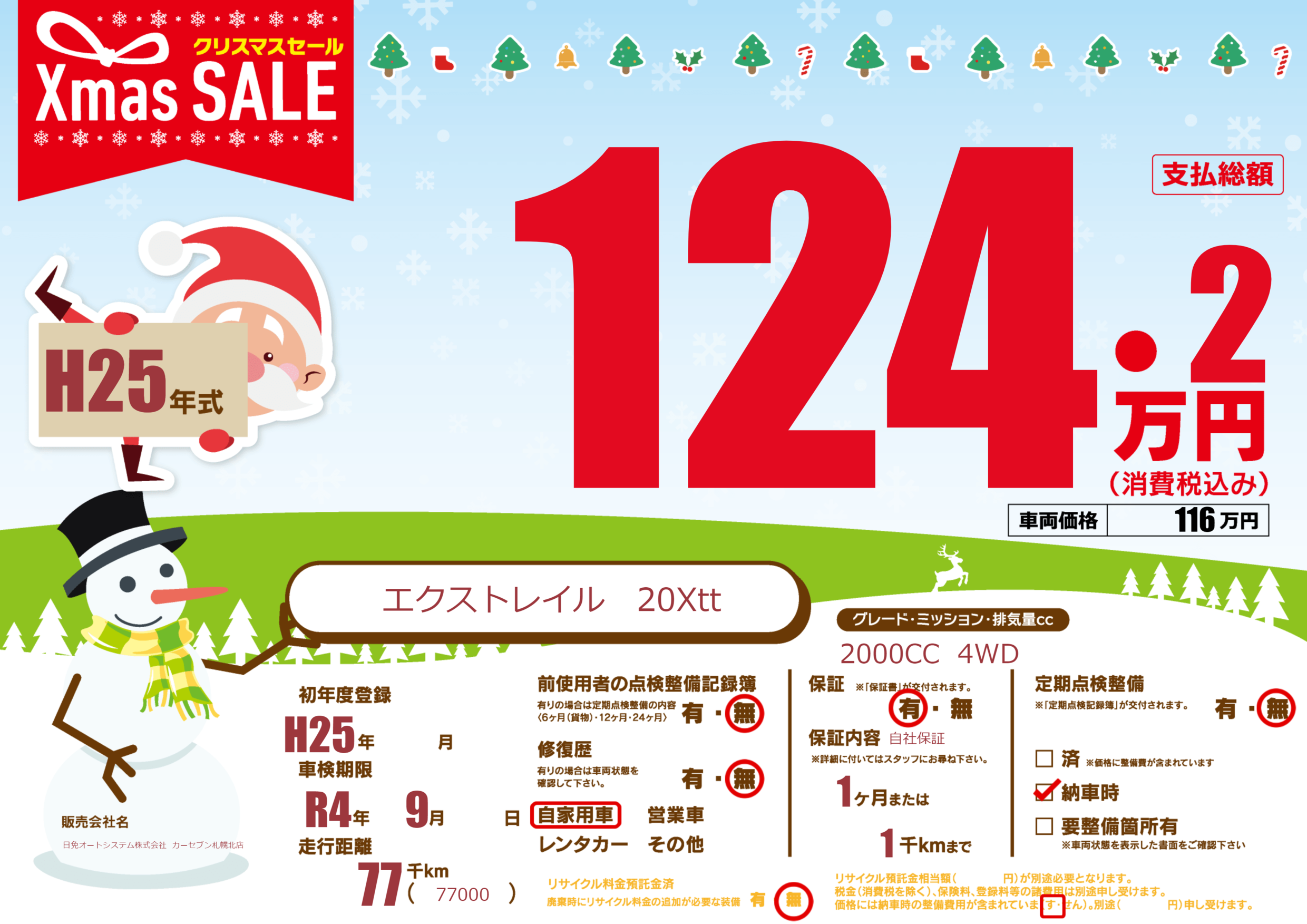 | 定期点検整備 | 定期点検整備なし 納車時あり | ||