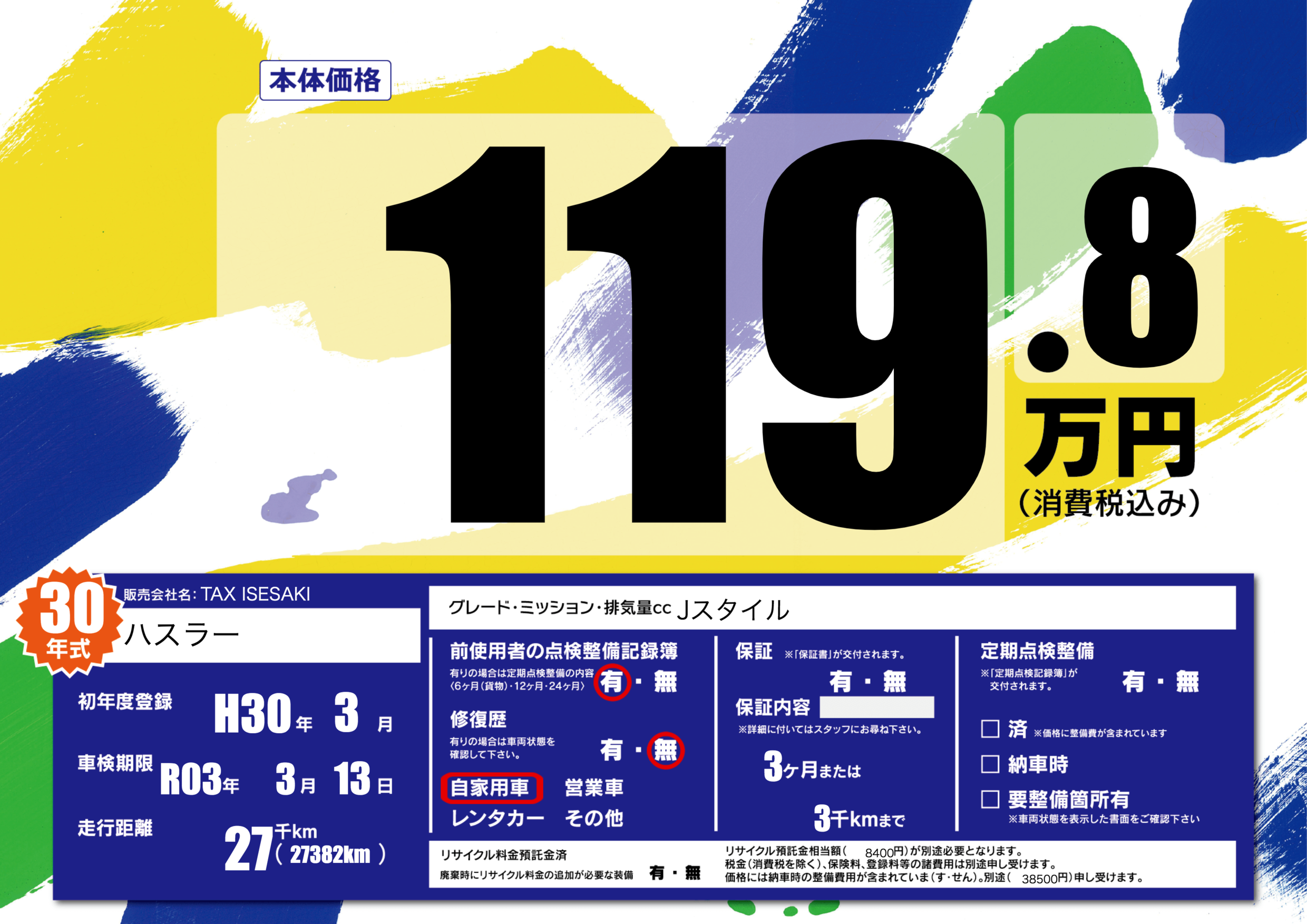 | 車検制限 | R03年 3月 13日 | ||