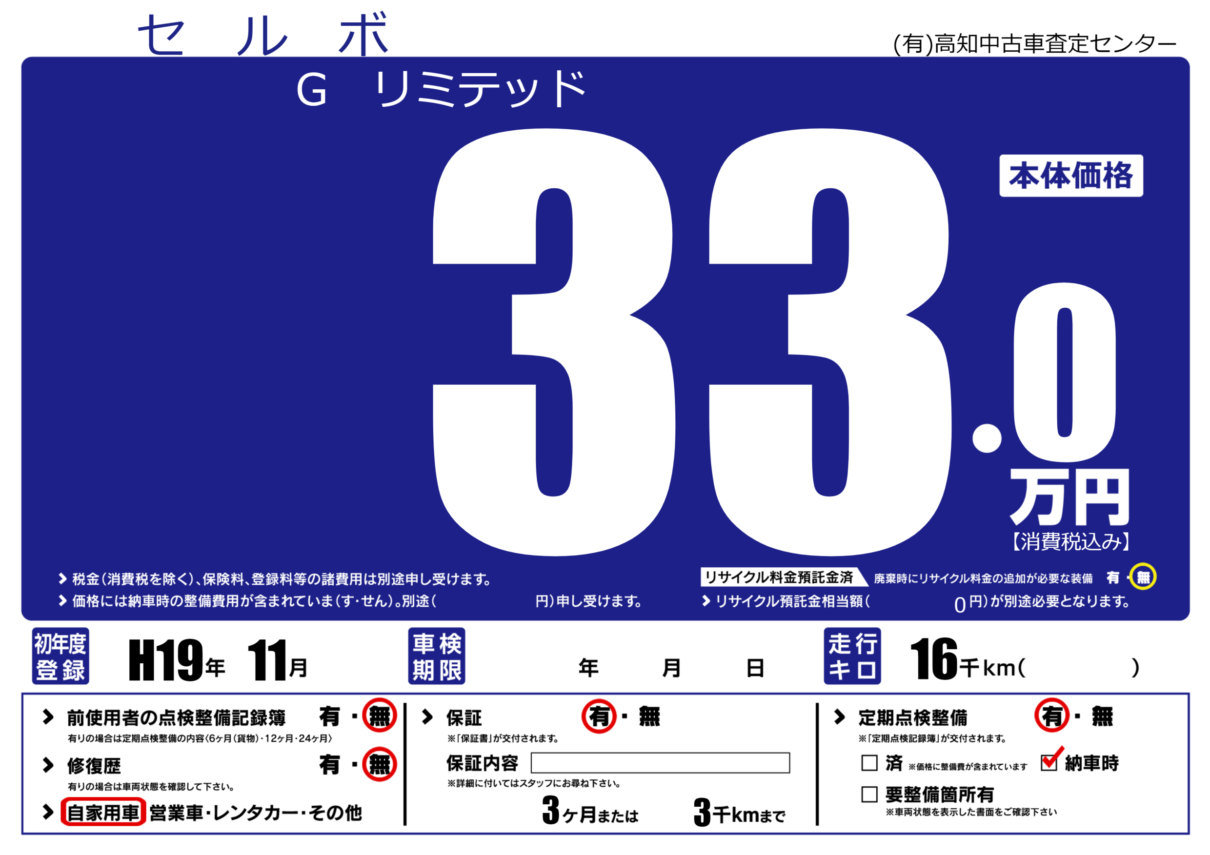 | 車名 | セ ル ボ | グレード ミッション 排気量 |