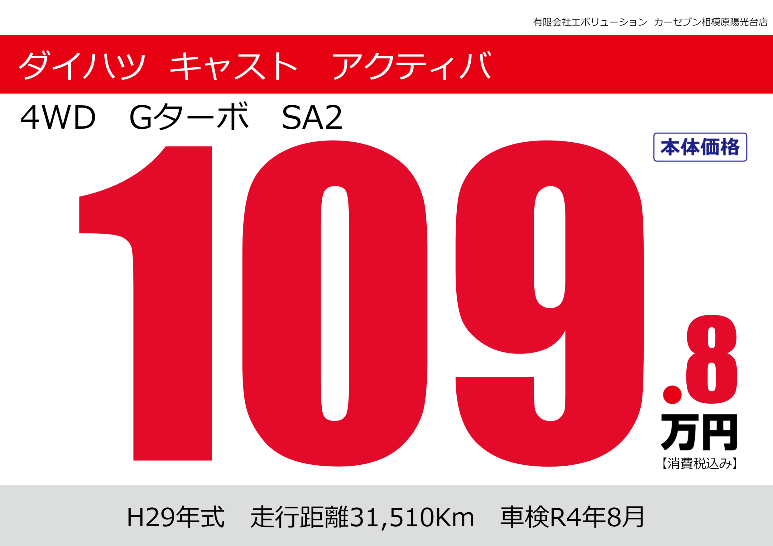 | 車名 | ダイハツ キャスト アクティバ | グレード ミッション 排気量 |