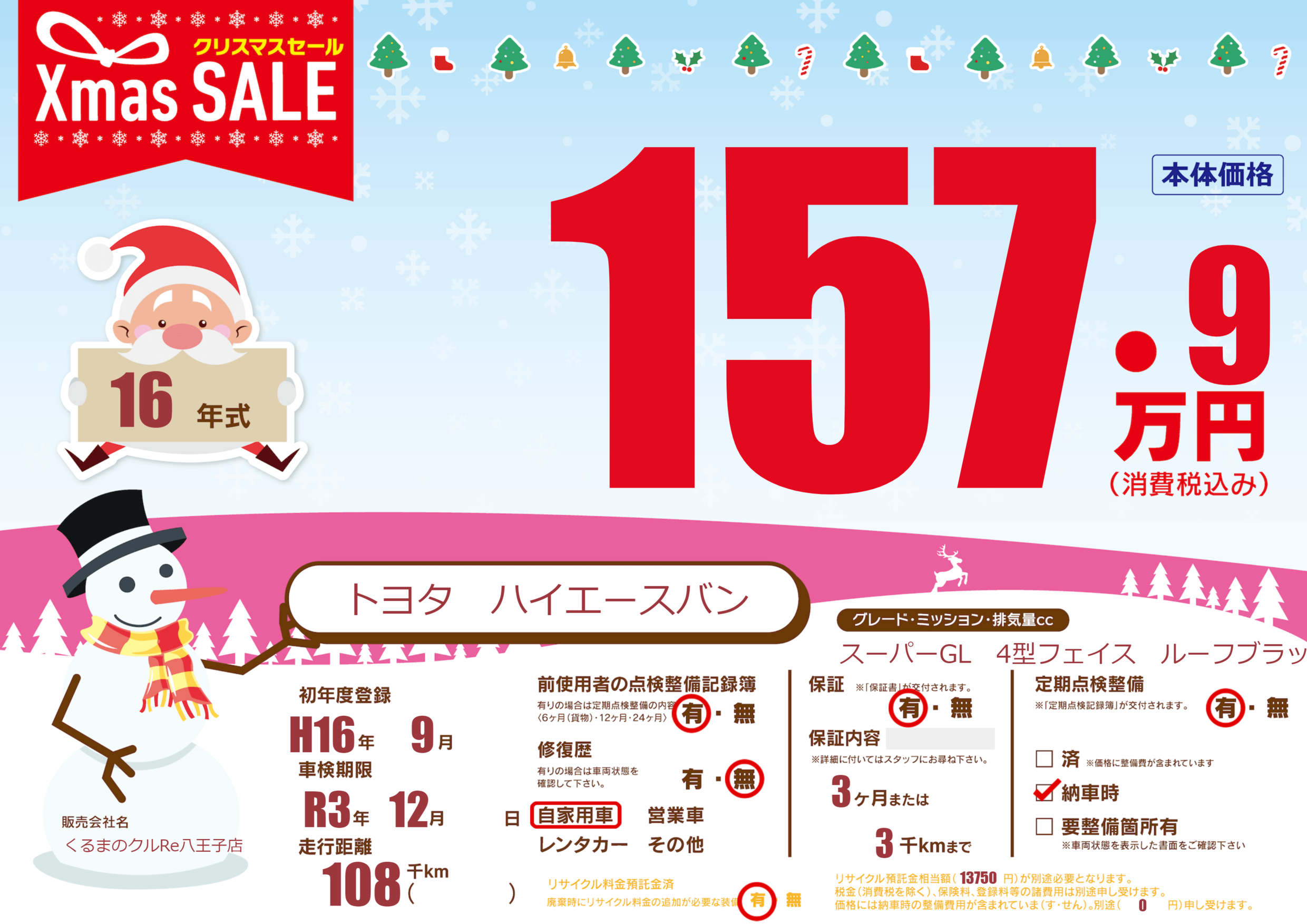 | 定期点検整備 | 定期点検整備あり 納車時あり | ||