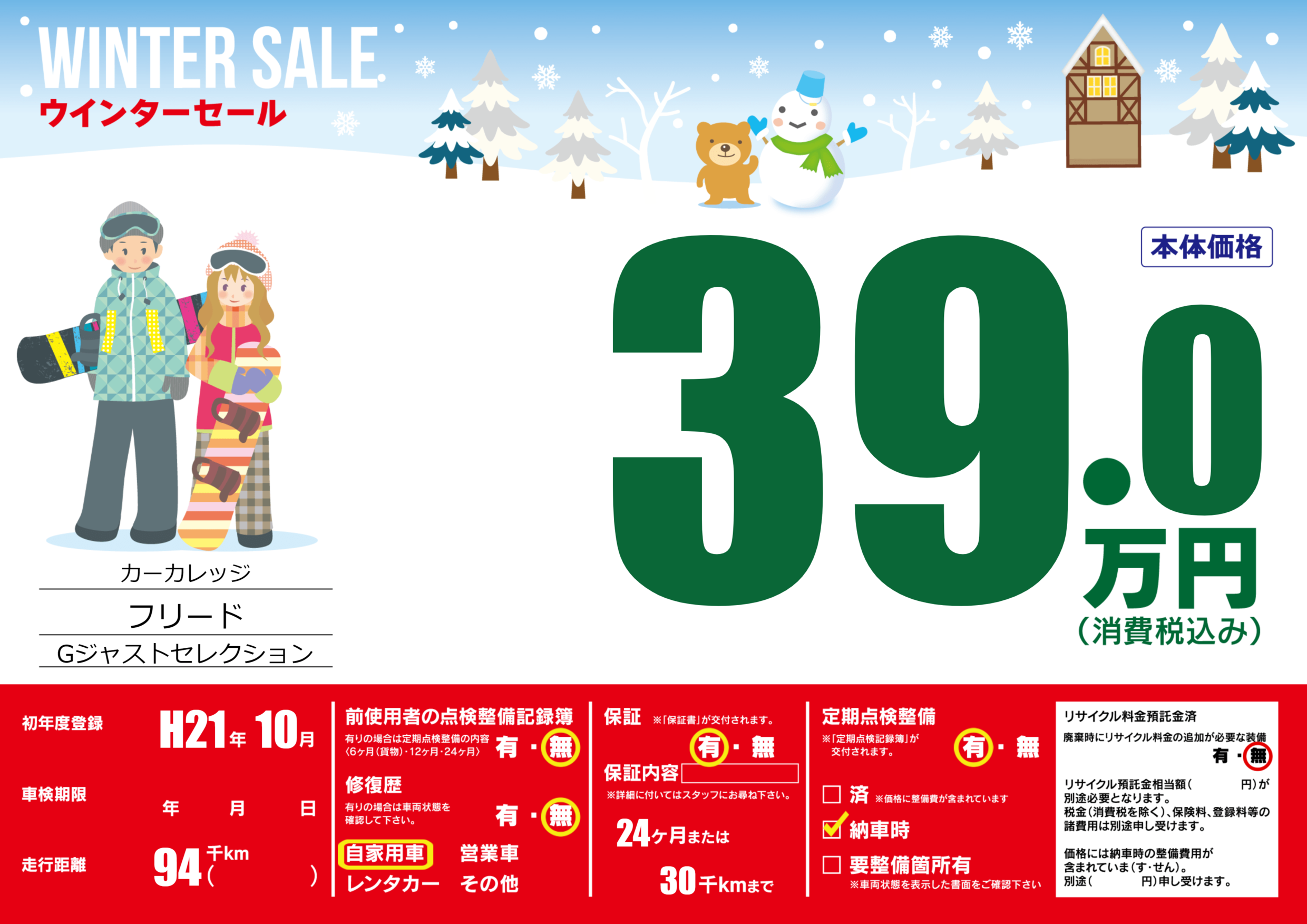 | 走行キロ | 9.4万km | 初年度登録 | H21年10月 |
