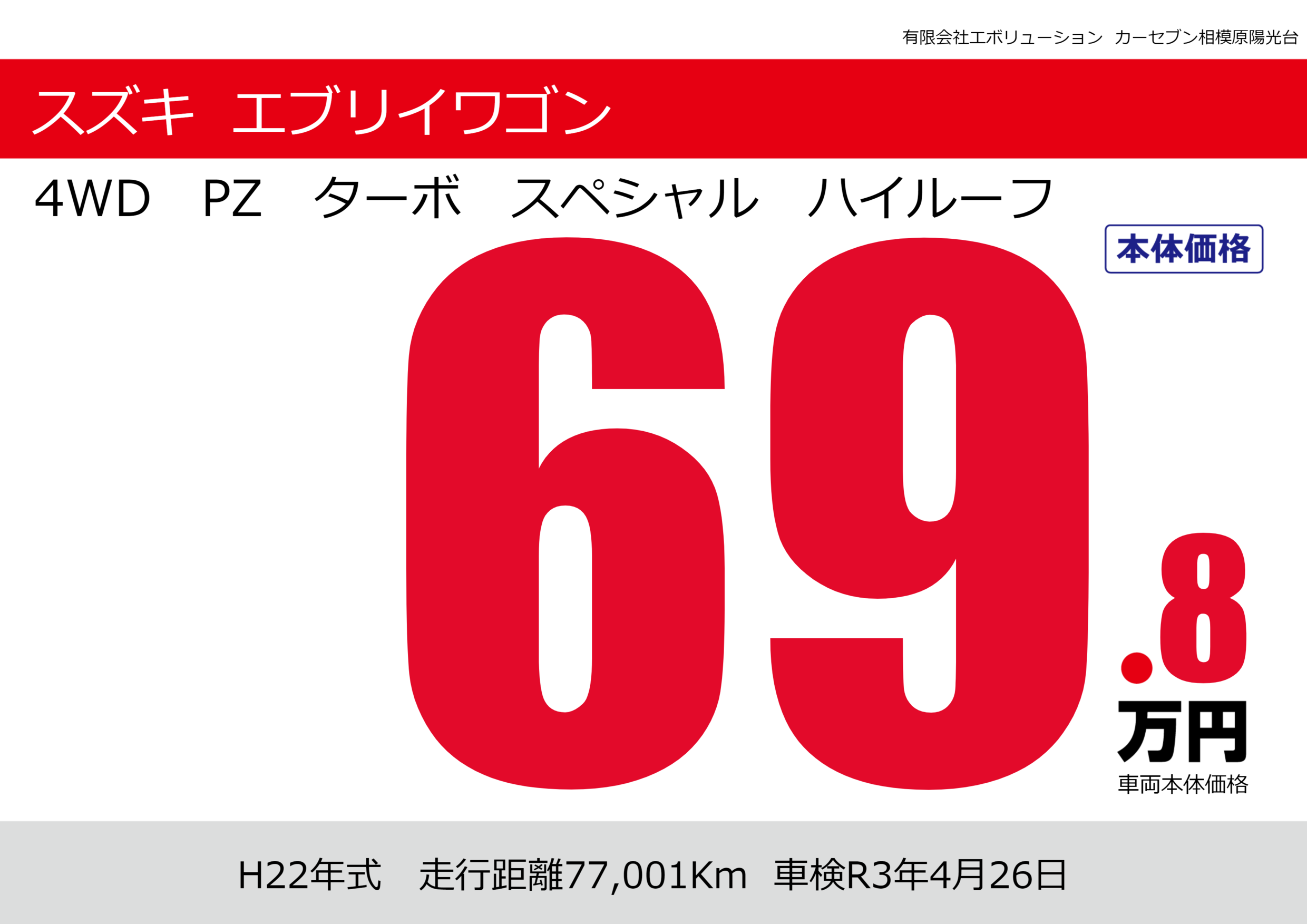 | 車名 | スズキ エブリイワゴン | グレード ミッション 排気量 |