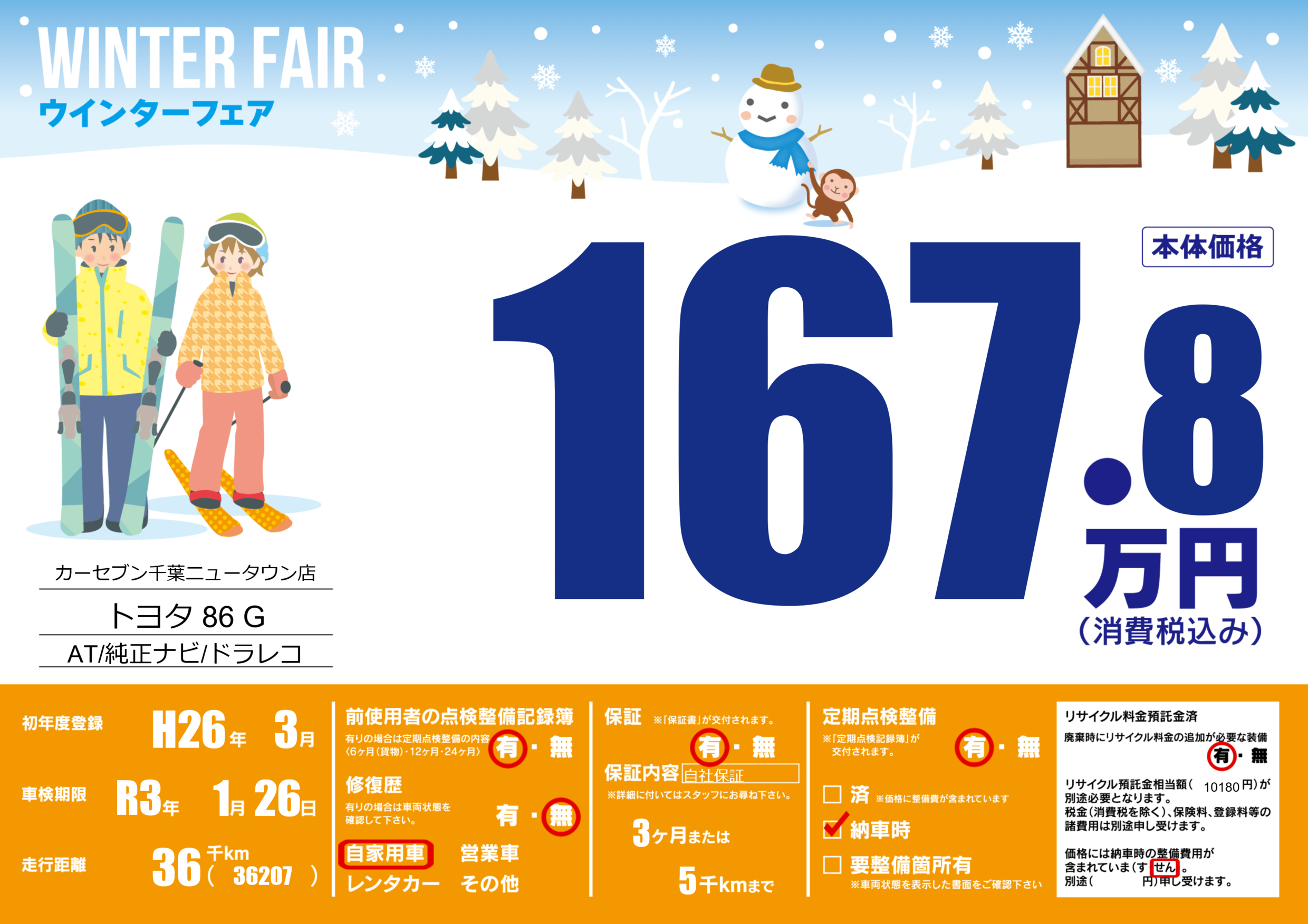 保証付き 保証内容(自社保証) 3ヶ月または5千km |