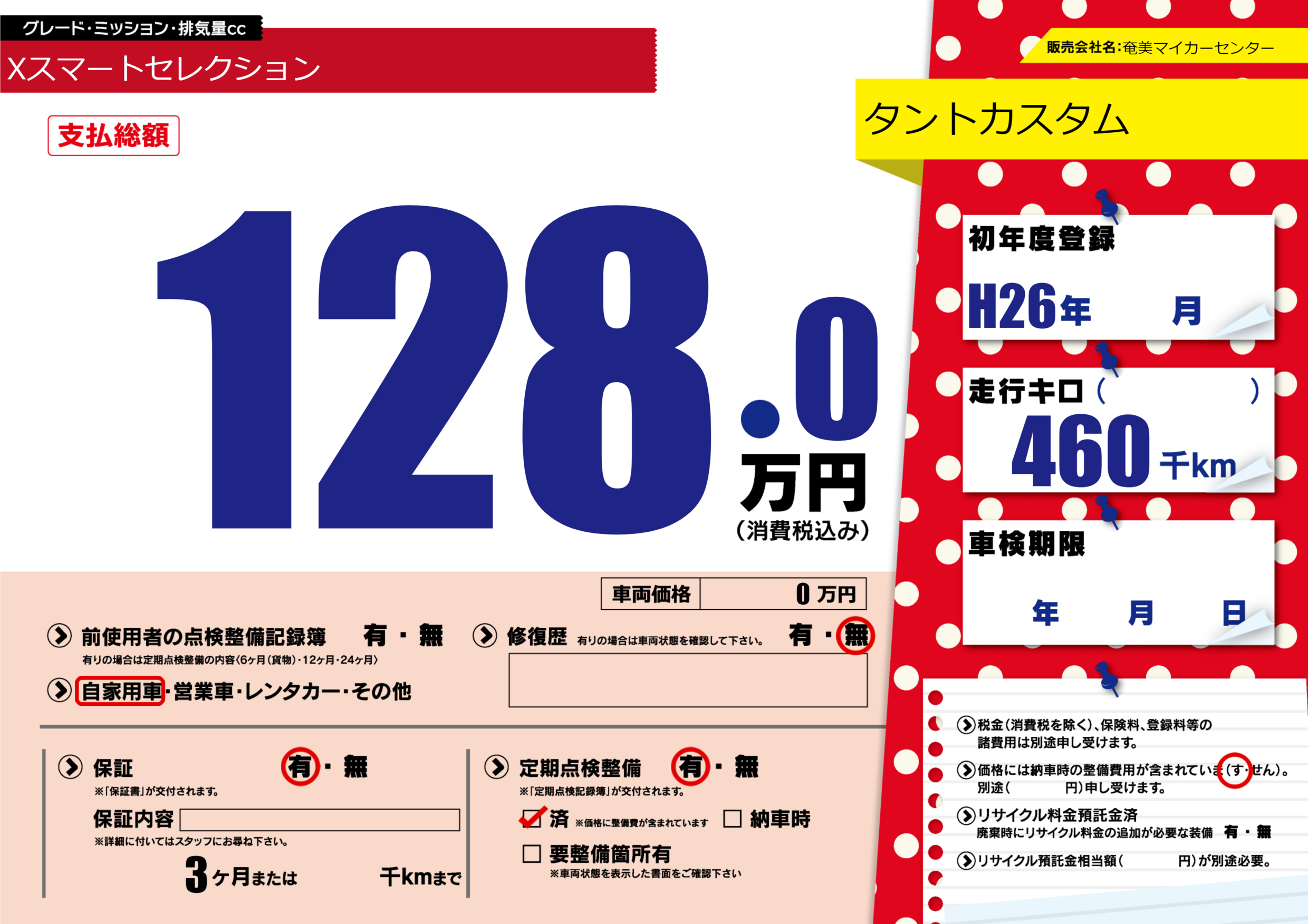 | 定期点検整備 | 定期点検整備あり 定期点検整備済み | ||