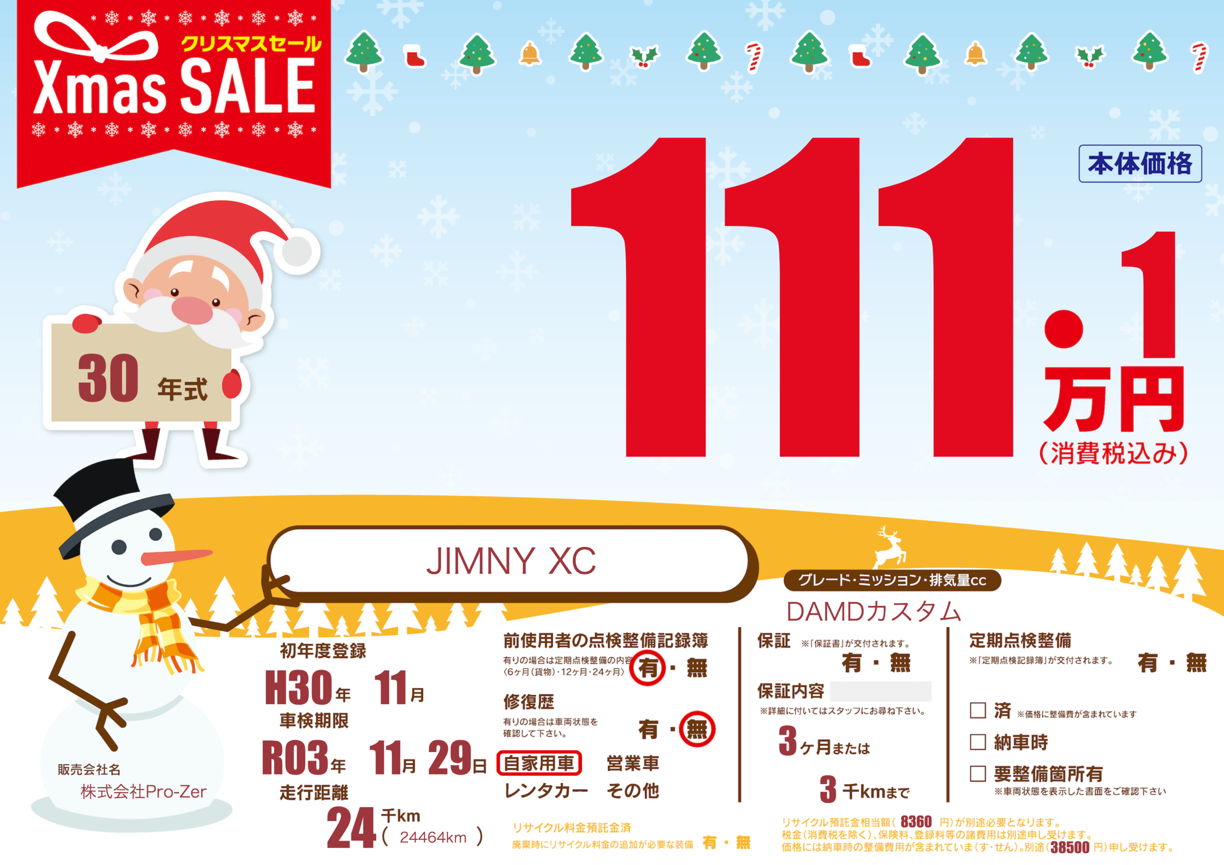 保証なし 保証内容(---) 3ヶ月または(3)千kmまで |