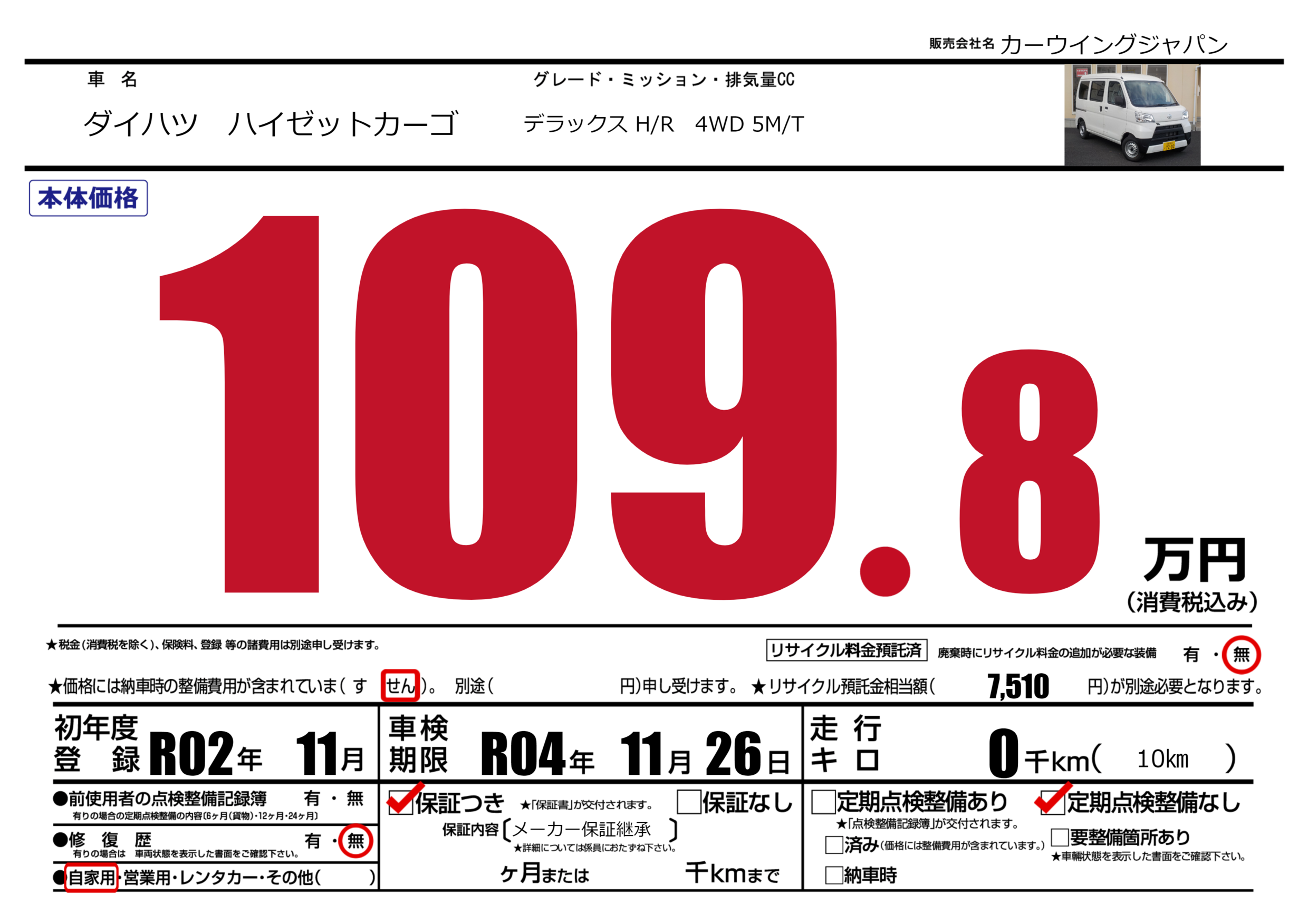 なし | 車検制限 | R04年11月26月 |