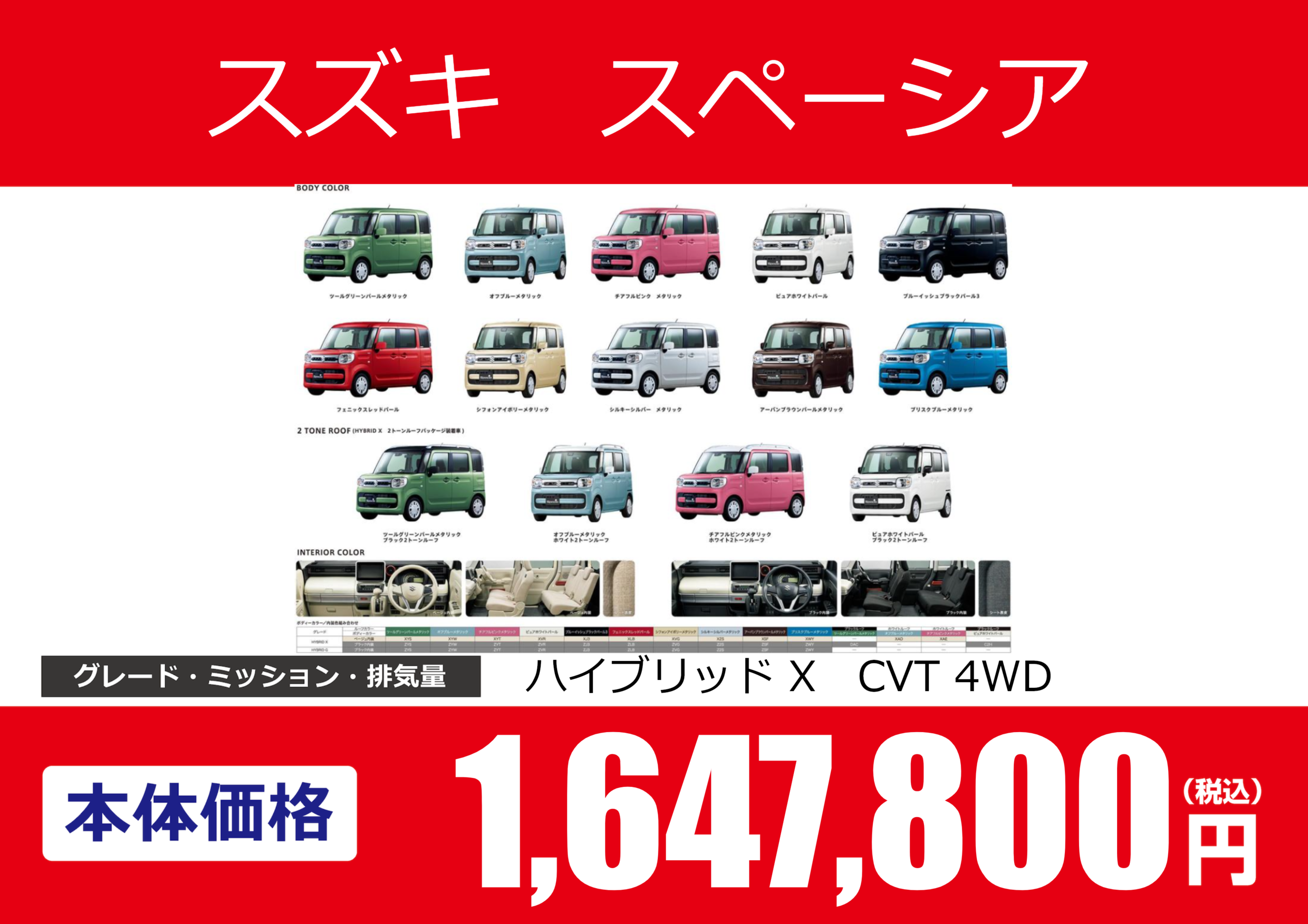 | 車名 | スズキ スペーシア | グレード ミッション 排気量 |
