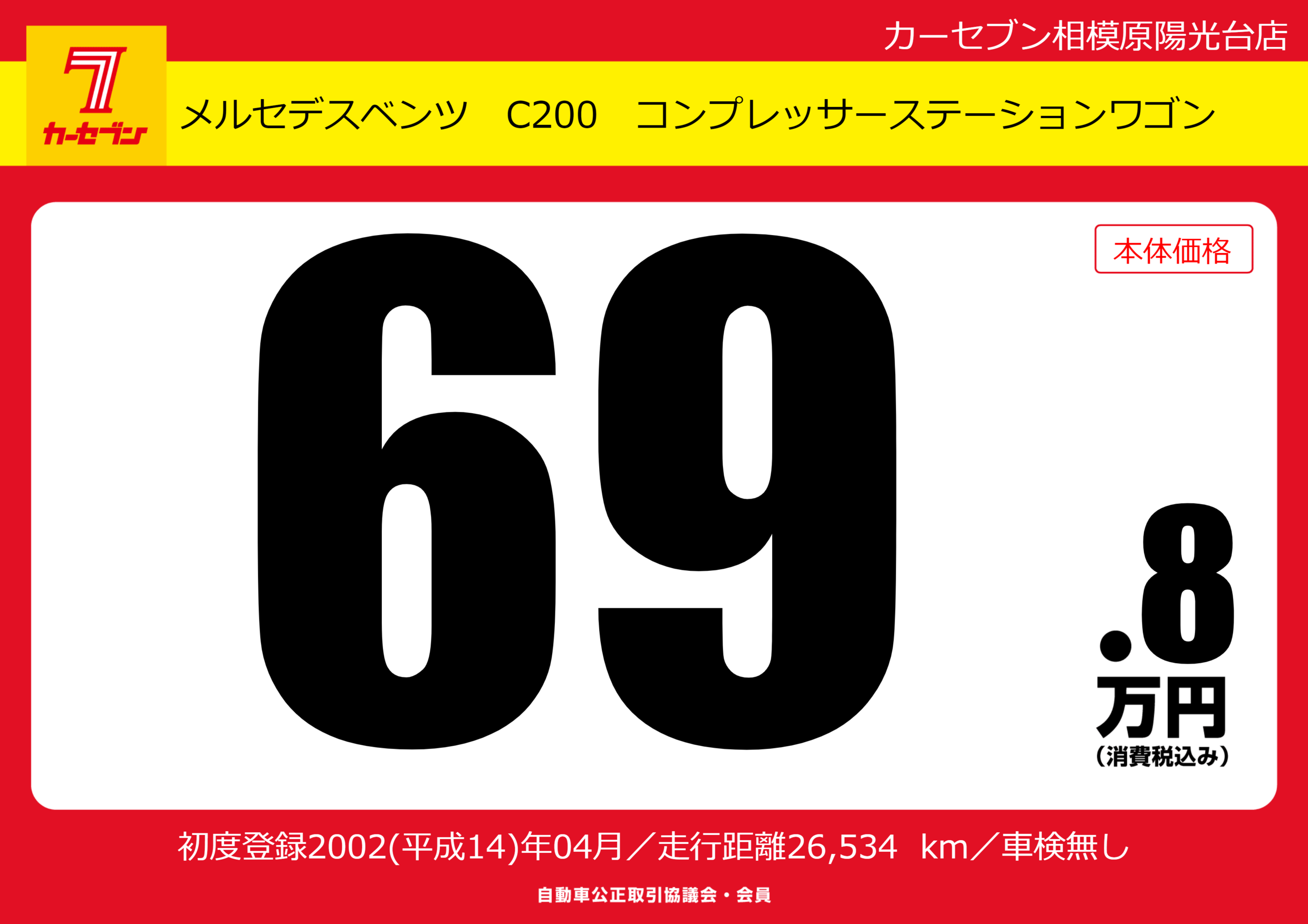 | 車名 | メルセデスベンツ C200 コンプレッサーステーションワゴン | グレード ミッション 排気量 |