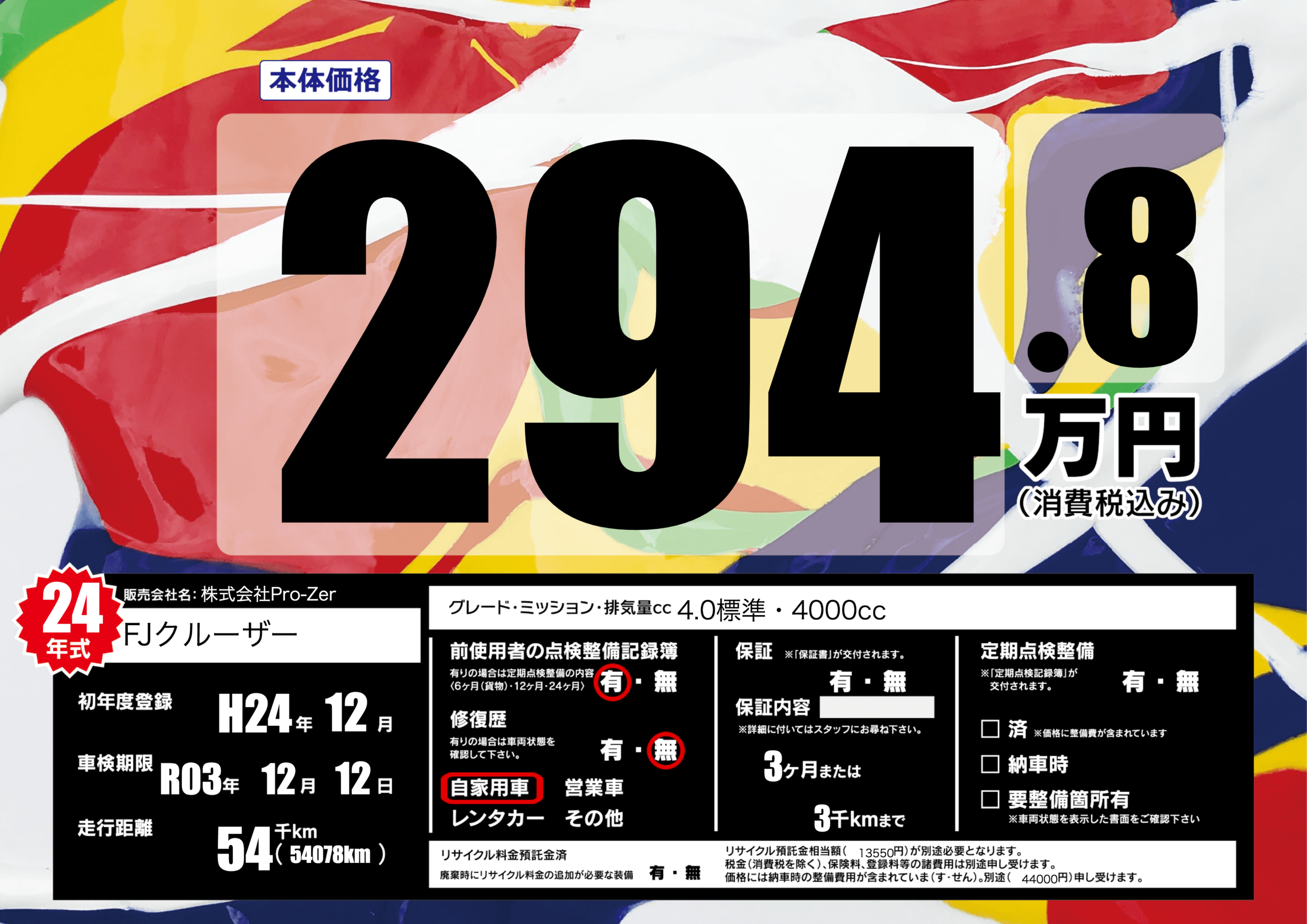 | 走行キロ | 5.4万km | 初年度登録 | H24年12月 |