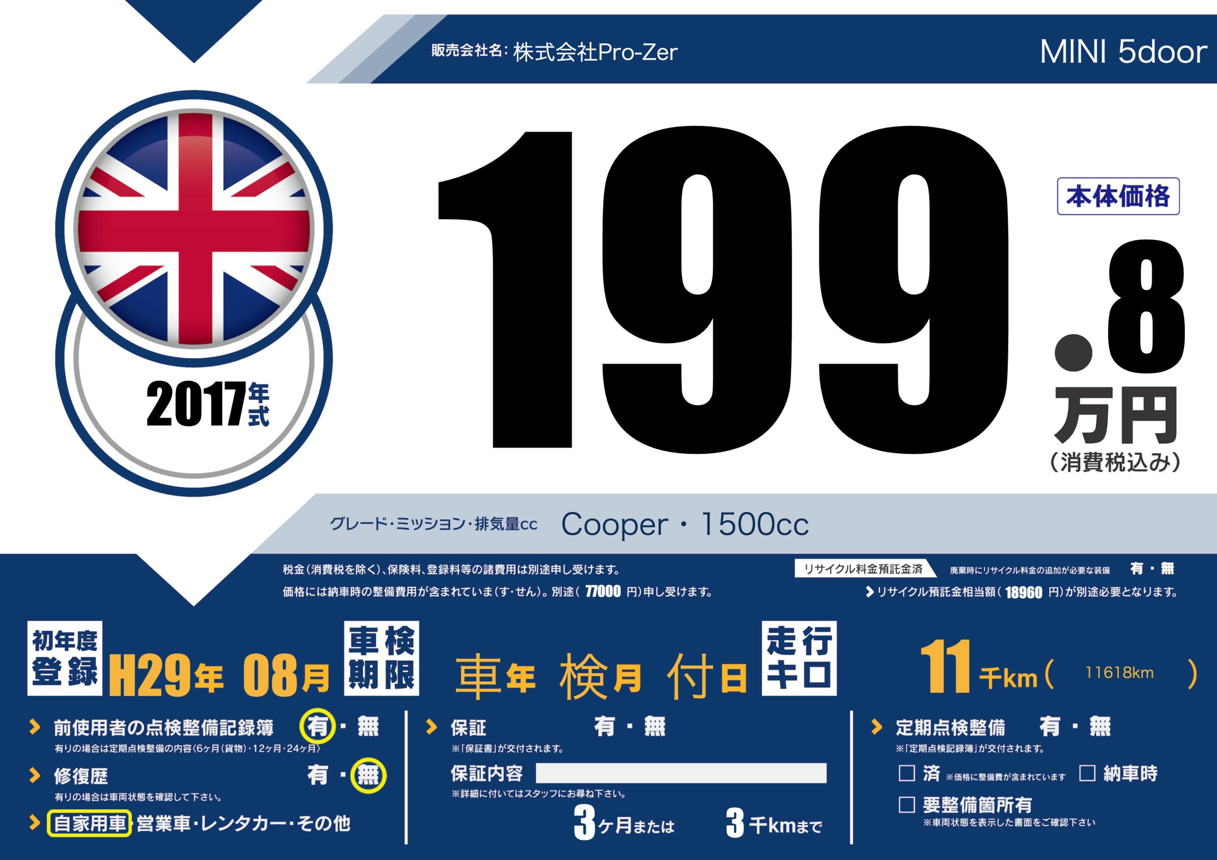 | 車名 | MINI 5door | グレード ミッション 排気量 |
