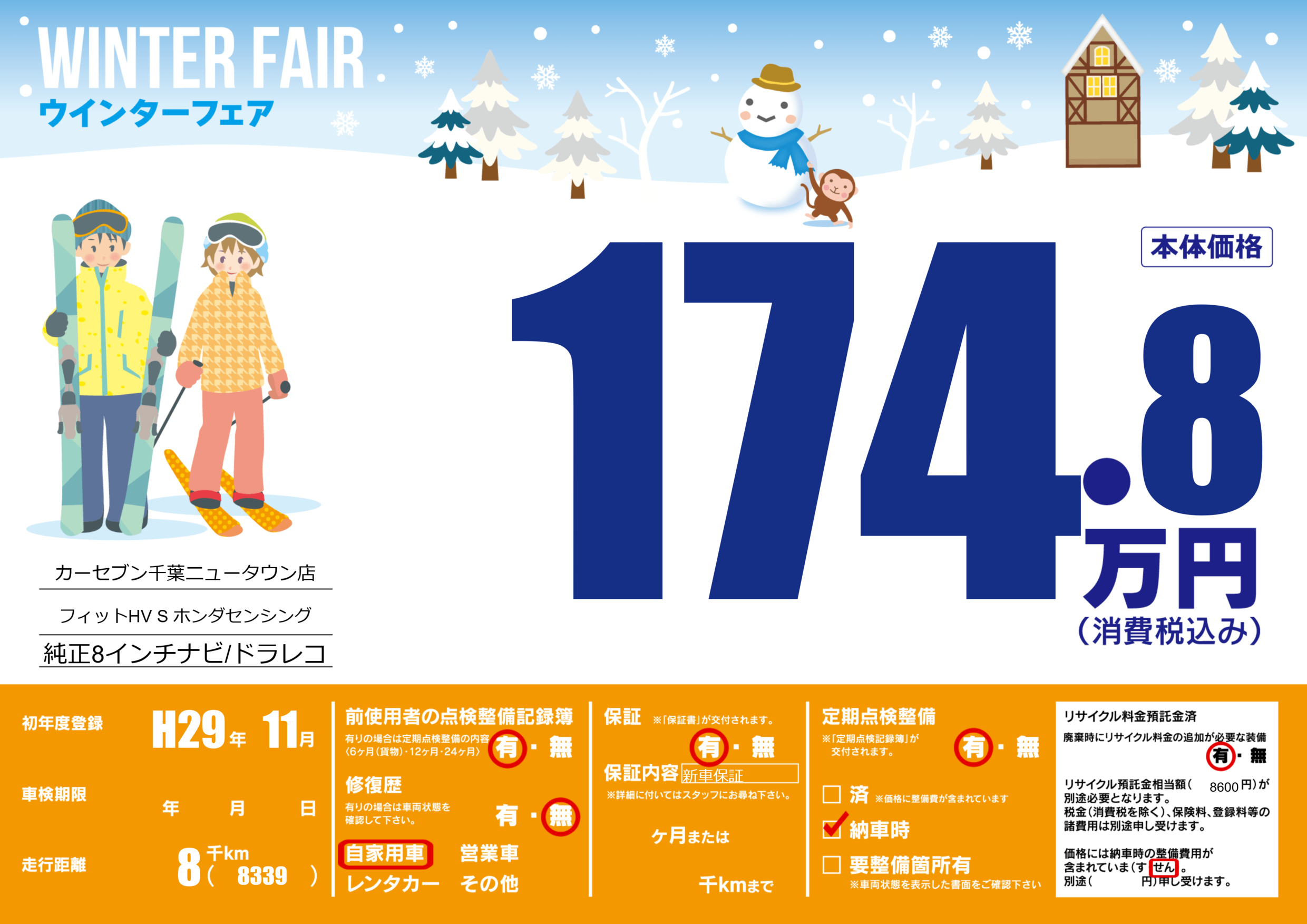 | 走行キロ | 0.8万km | 初年度登録 | H29年11月 |