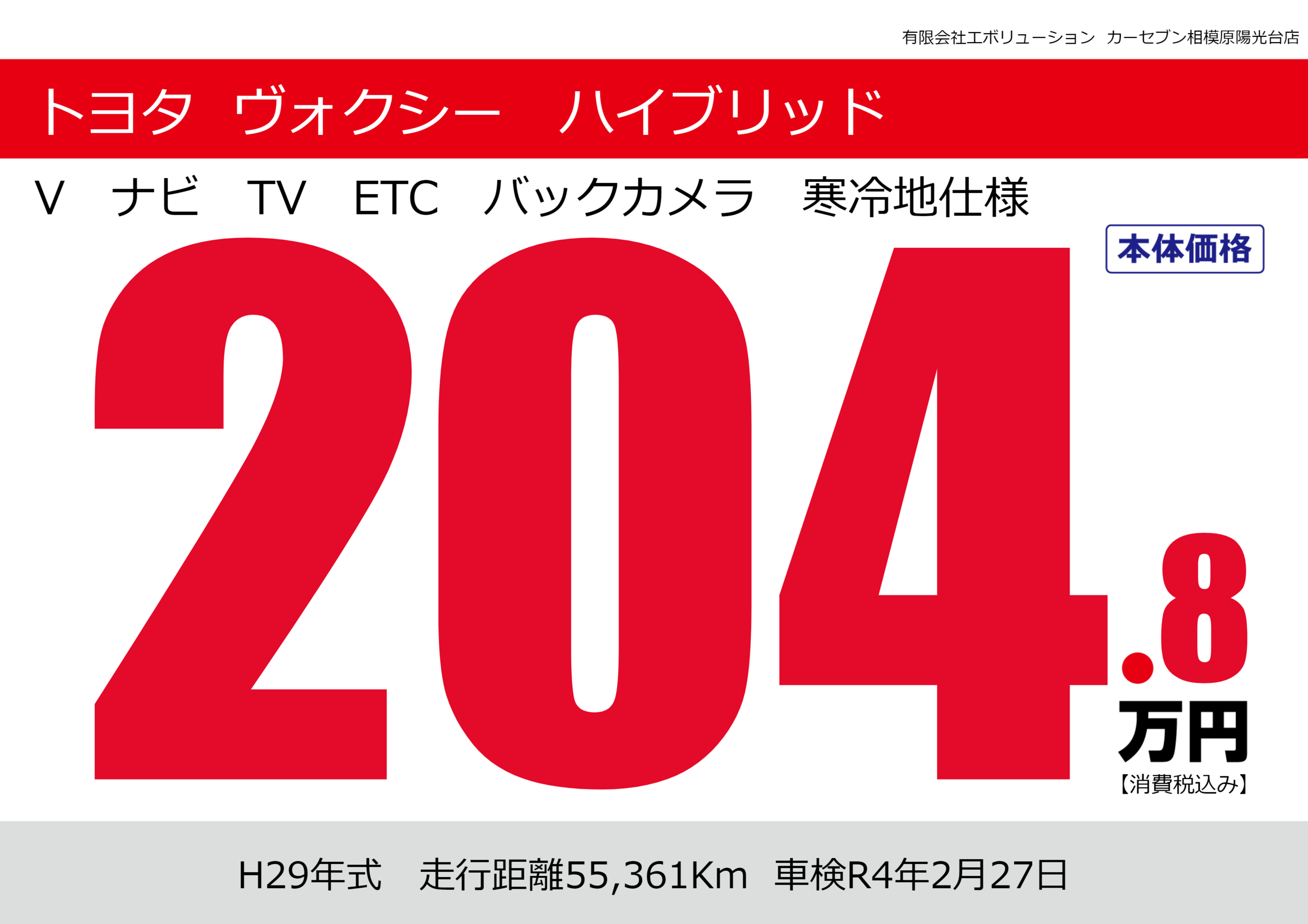 | 車名 | トヨタ ヴォクシー ハイブリッド | グレード ミッション 排気量 |