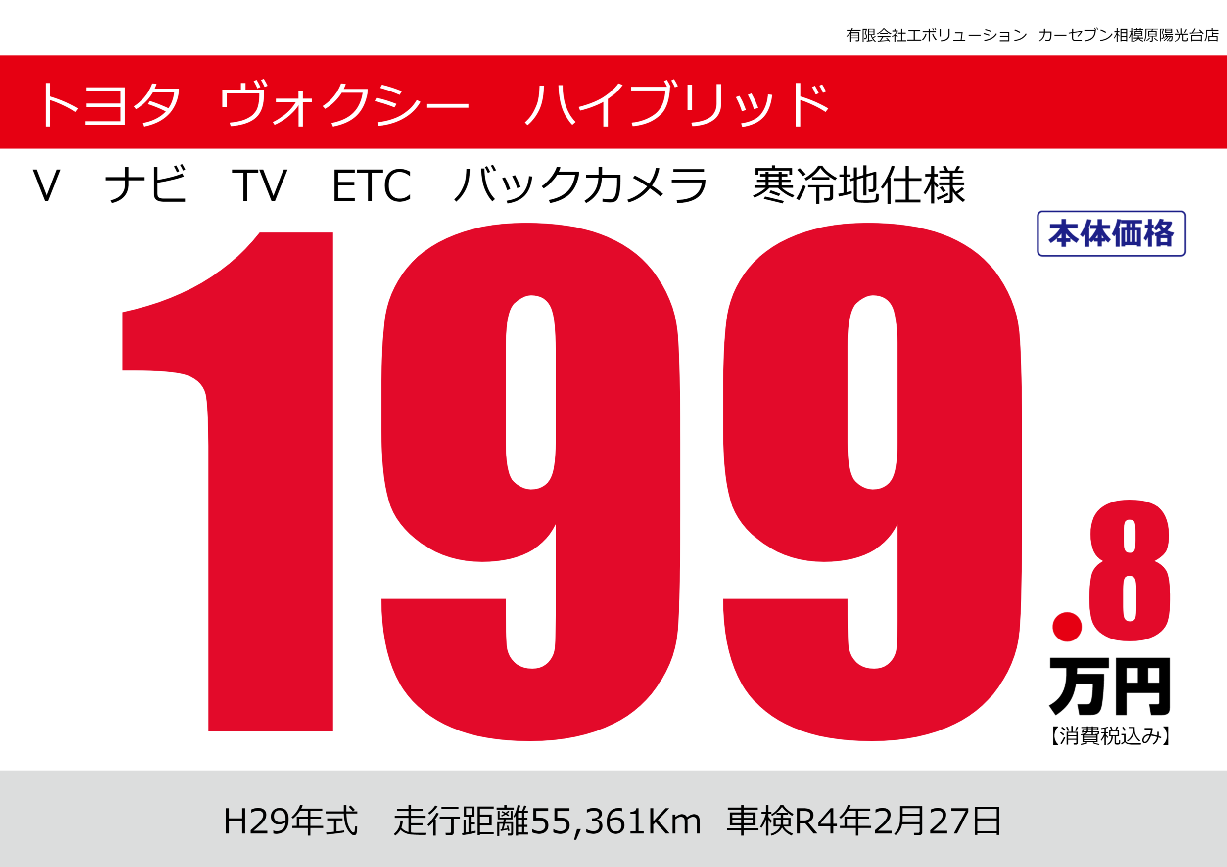 | 車名 | トヨタ ヴォクシー ハイブリッド | グレード ミッション 排気量 |