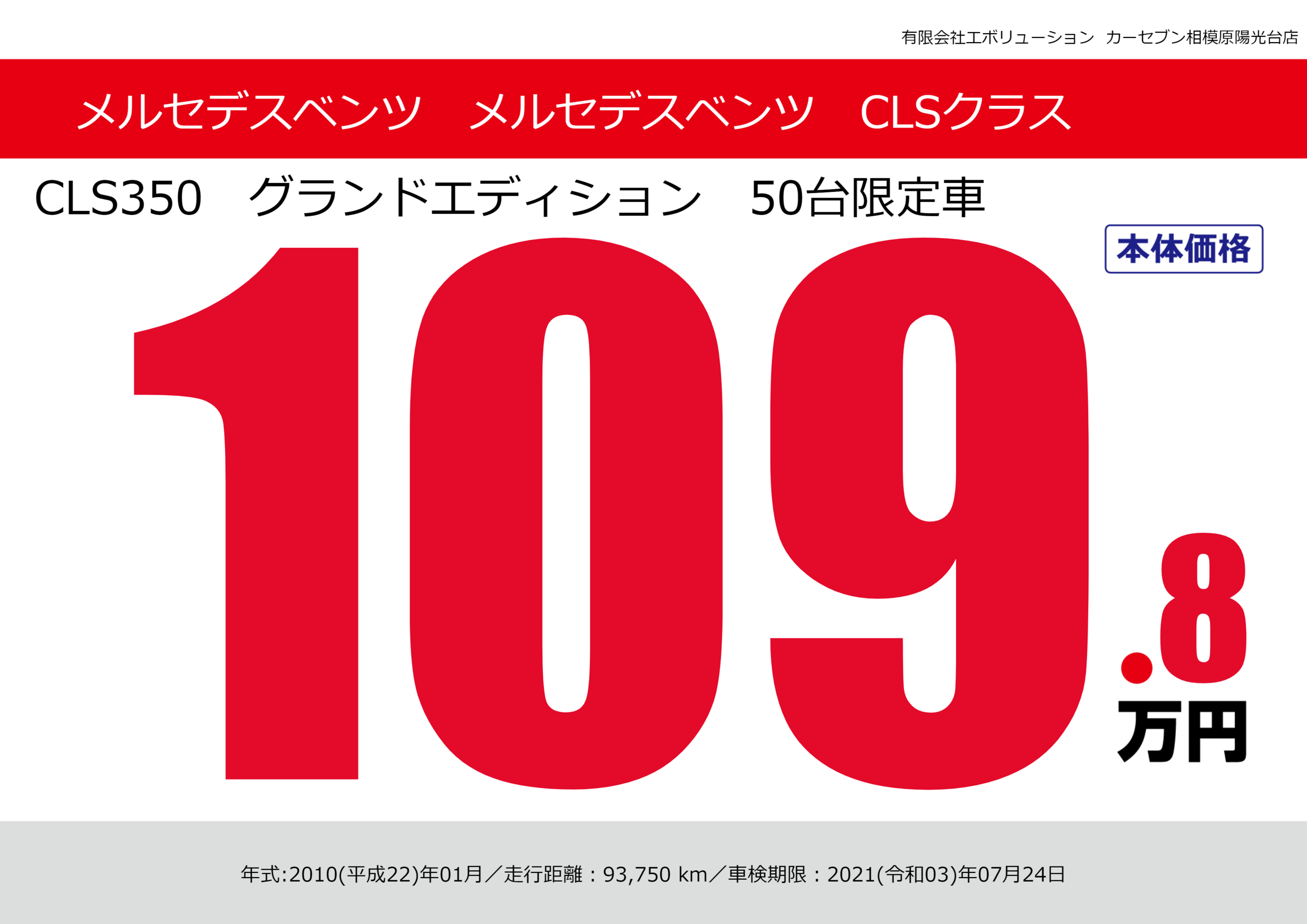 | 車名 | メルセデスベンツ メルセデスベンツ CLSクラス | グレード ミッション 排気量 |