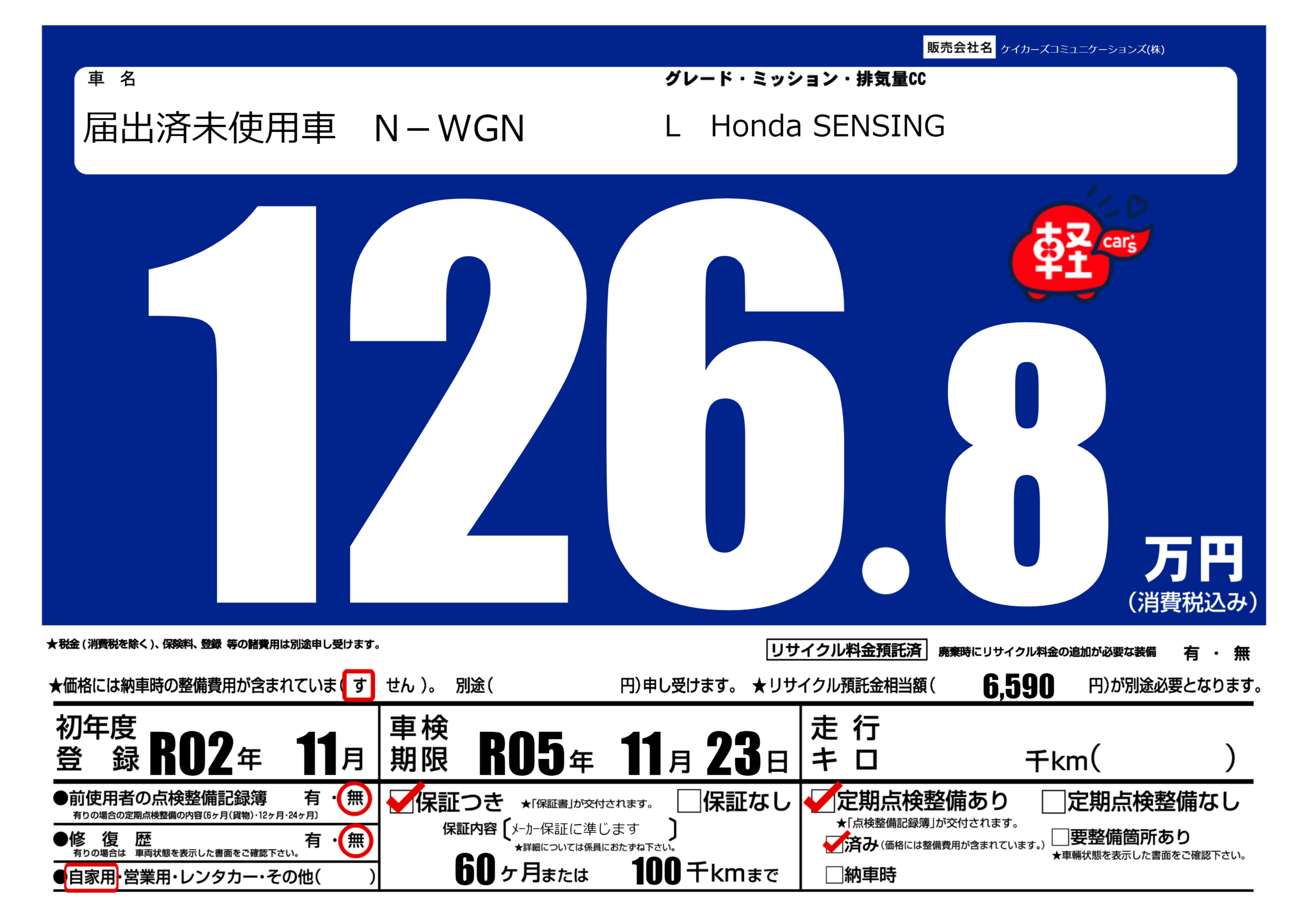 | 定期点検整備 | 定期点検整備あり 定期点検整備済み | ||