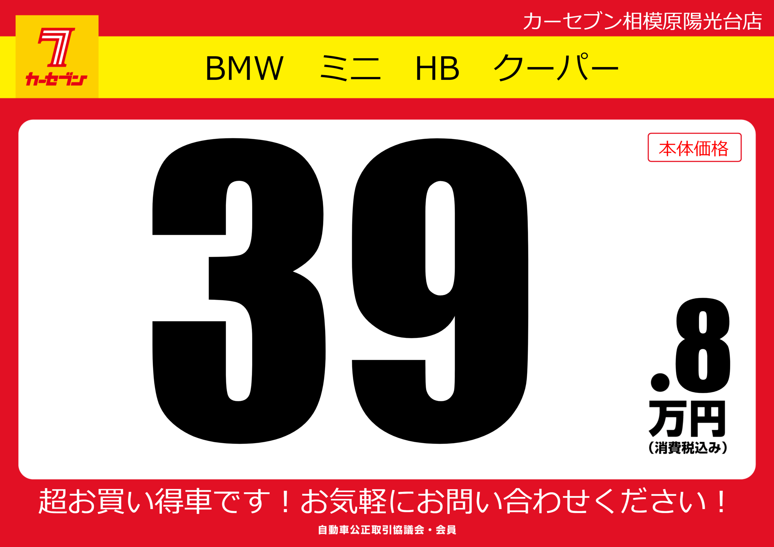 | 車名 | BMW ミニ HB クーパー | グレード ミッション 排気量 |