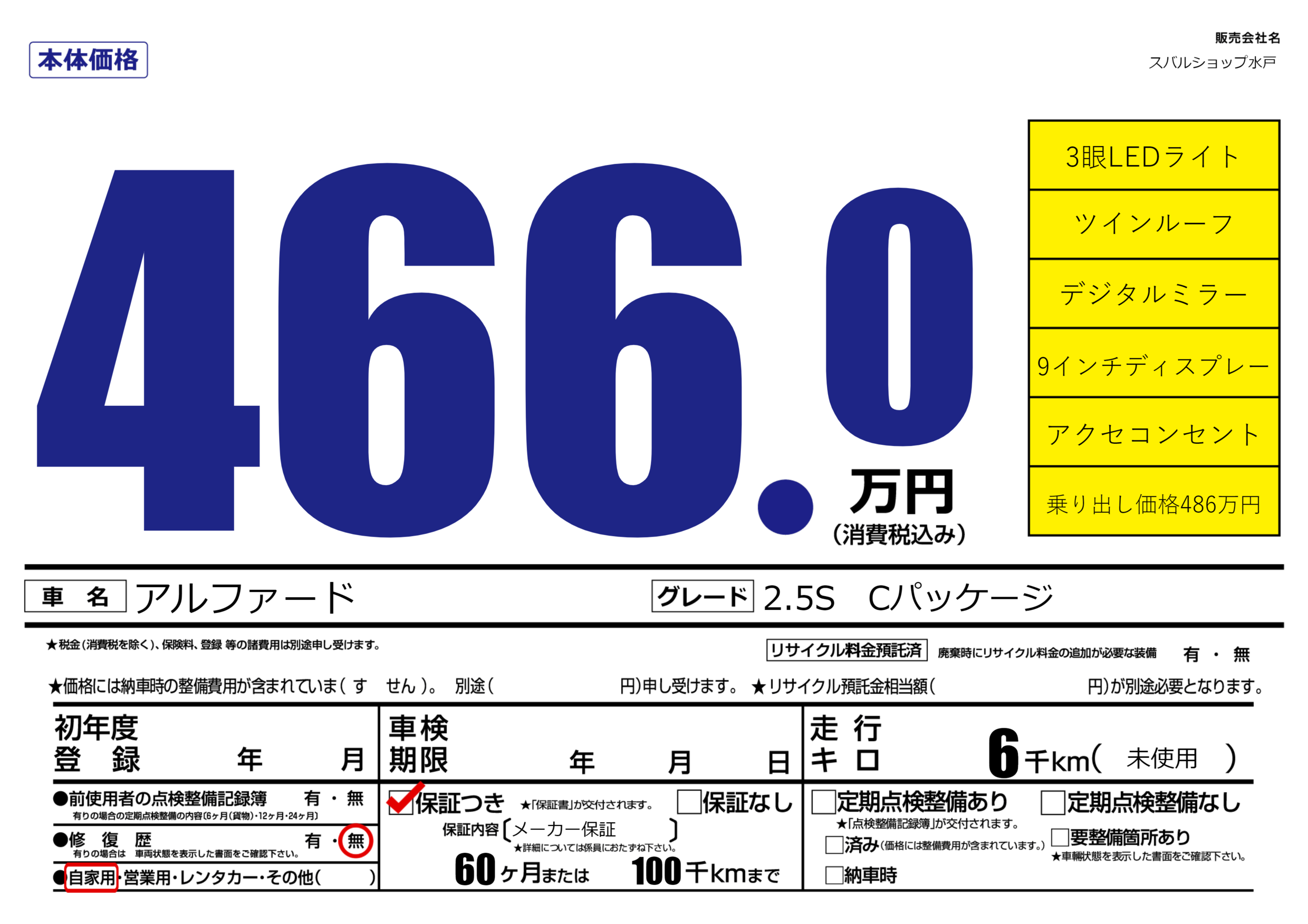 | 走行キロ | 0.6万km | ||
