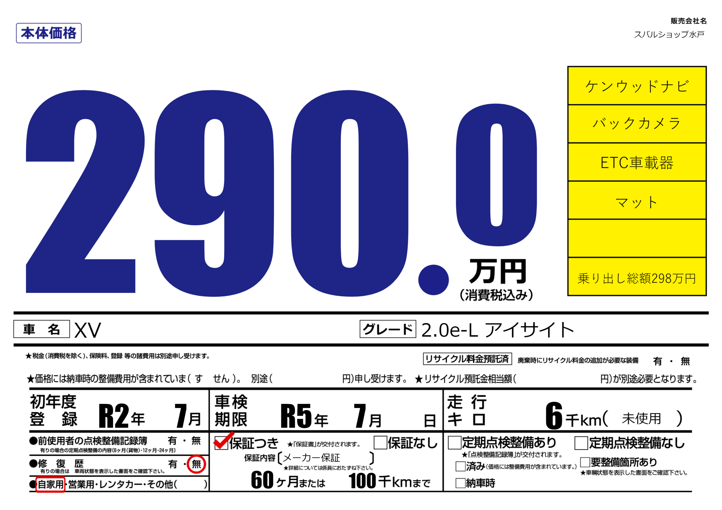 なし | 車検制限 | R5年7月---月 |