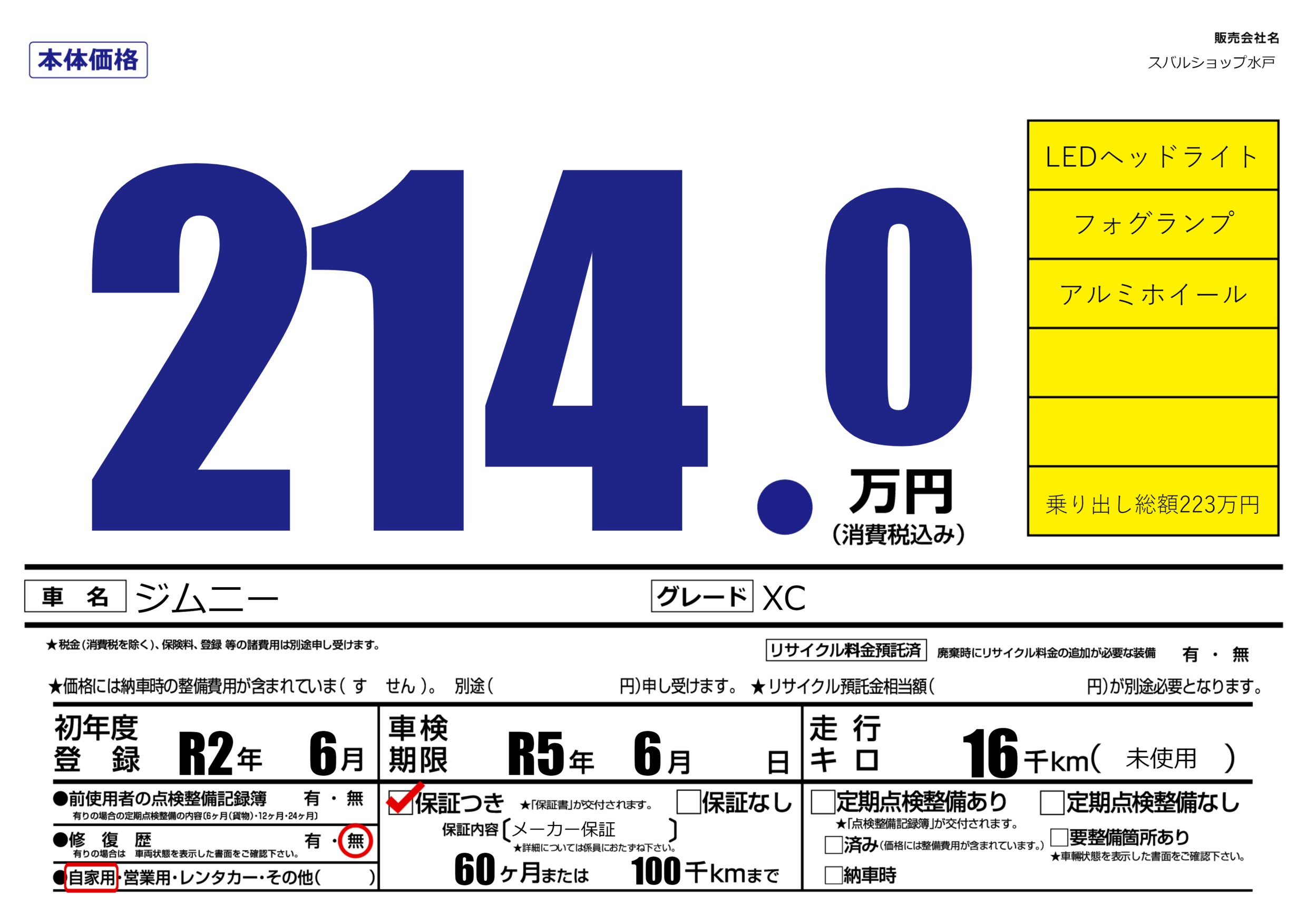 なし | 車検制限 | R5年6月---月 |