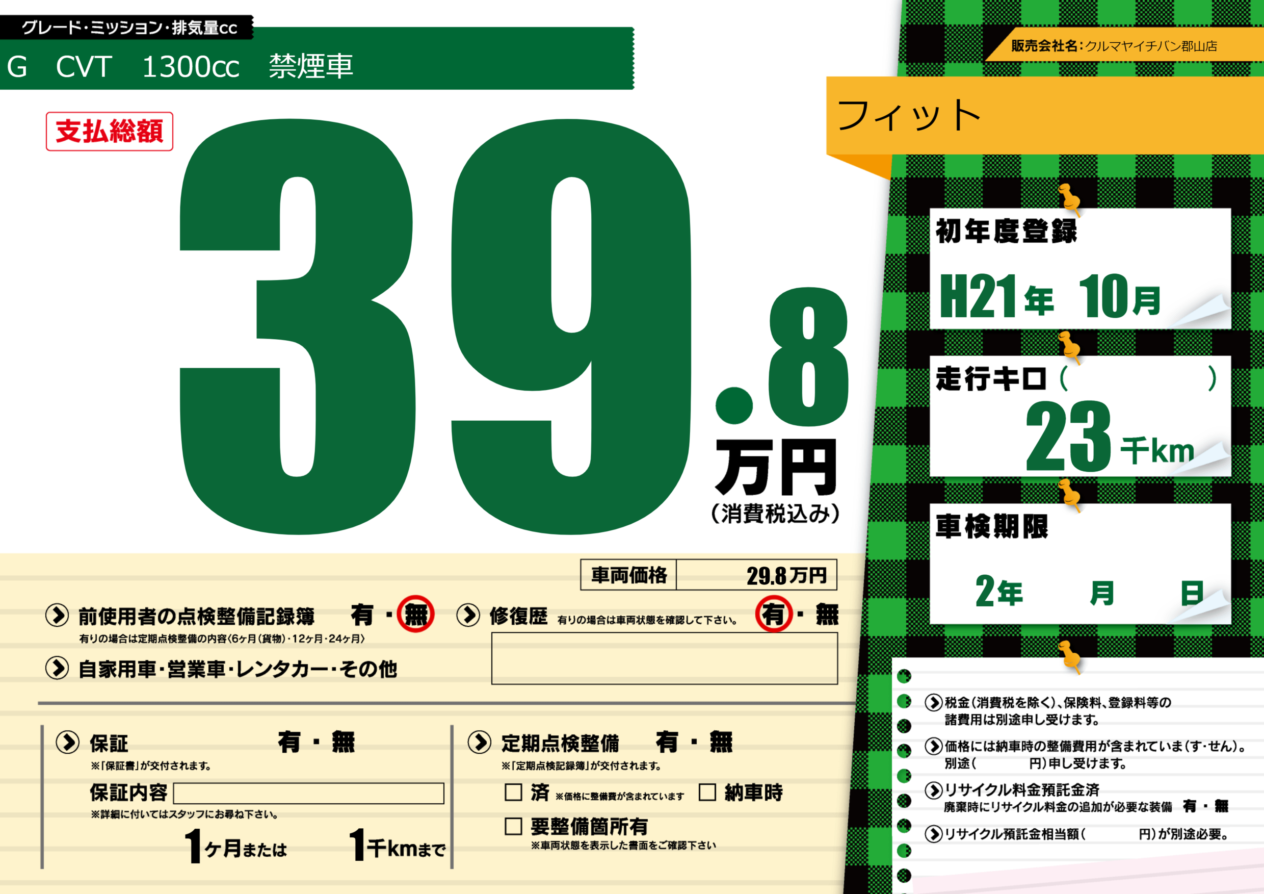 | 走行キロ | 2.3万km | 初年度登録 | H21年10月 |