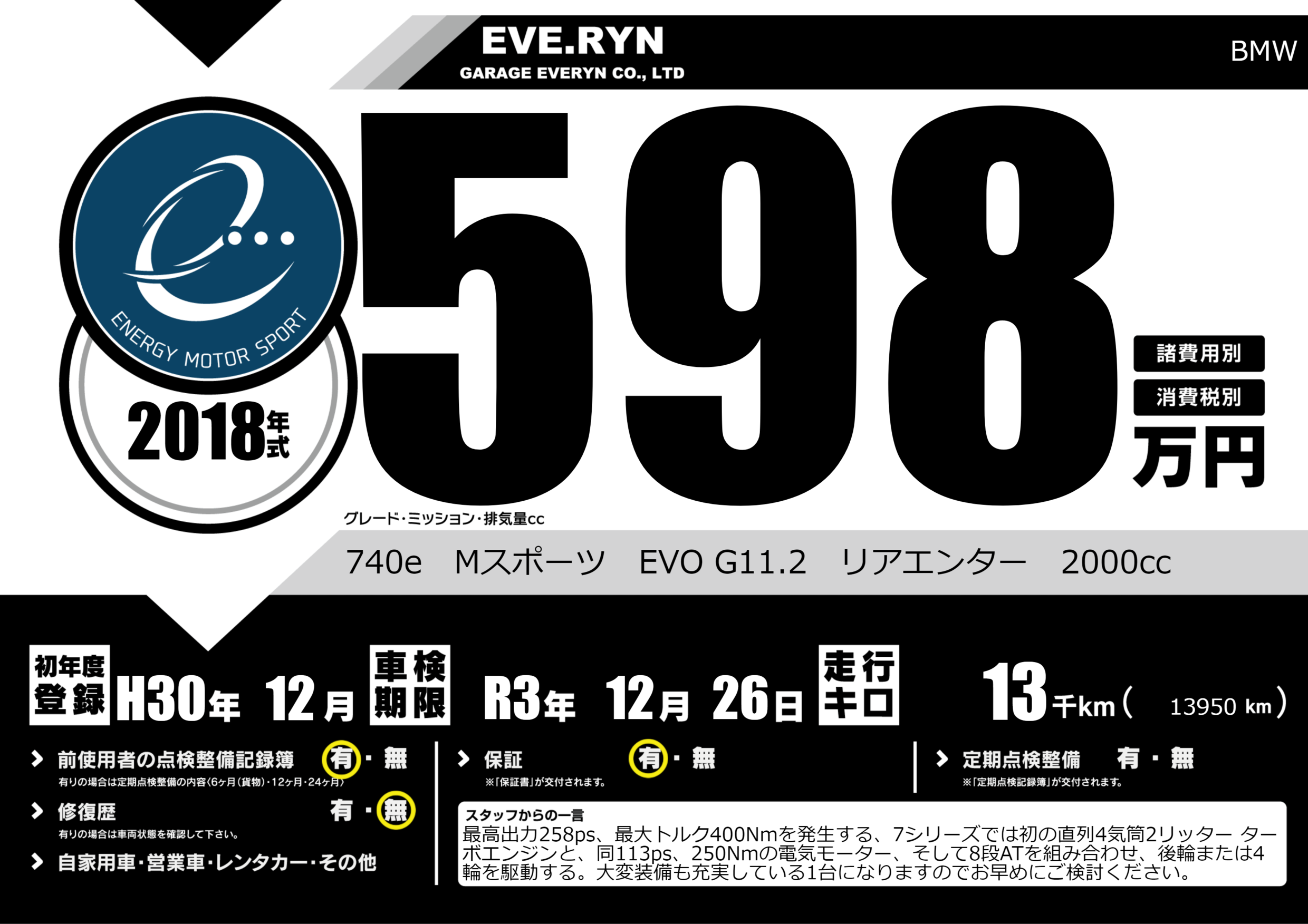 740e Mスポーツ EVO G11.2 リアエンター 2000cc |