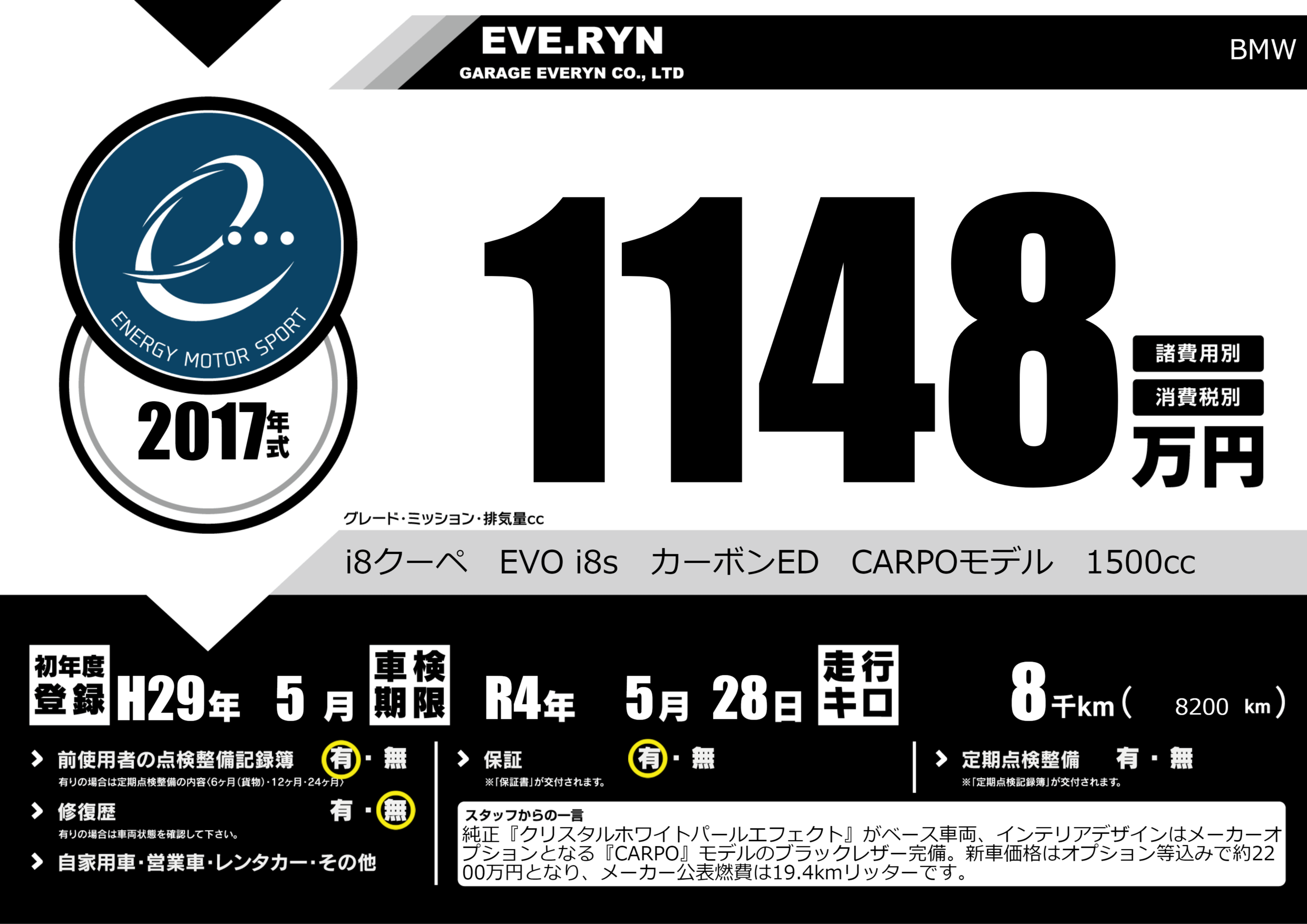 i8クーペ EVO i8s カーボンED CARPOモデル 1500cc |