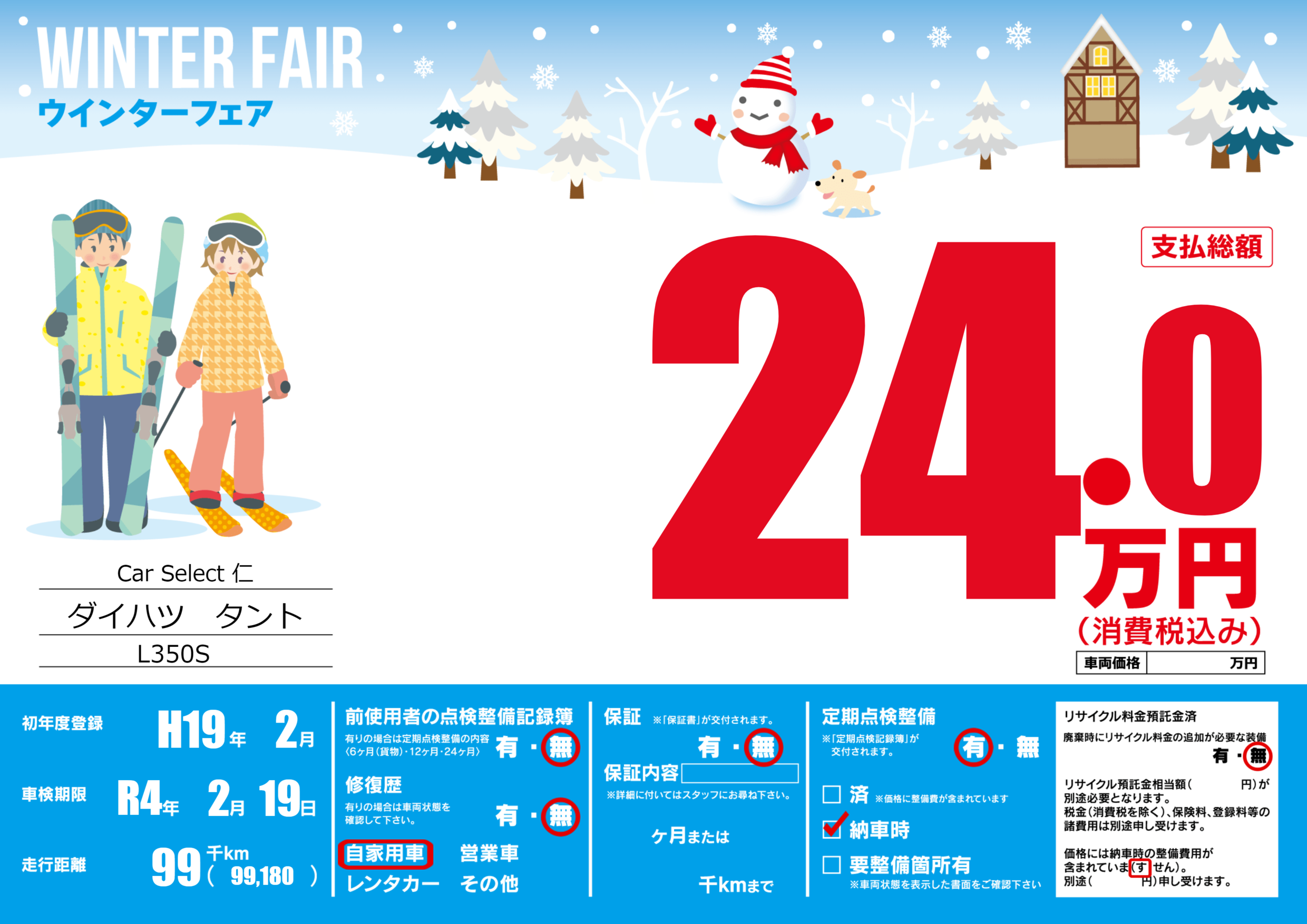 | 定期点検整備 | 定期点検整備あり 納車時あり | ||