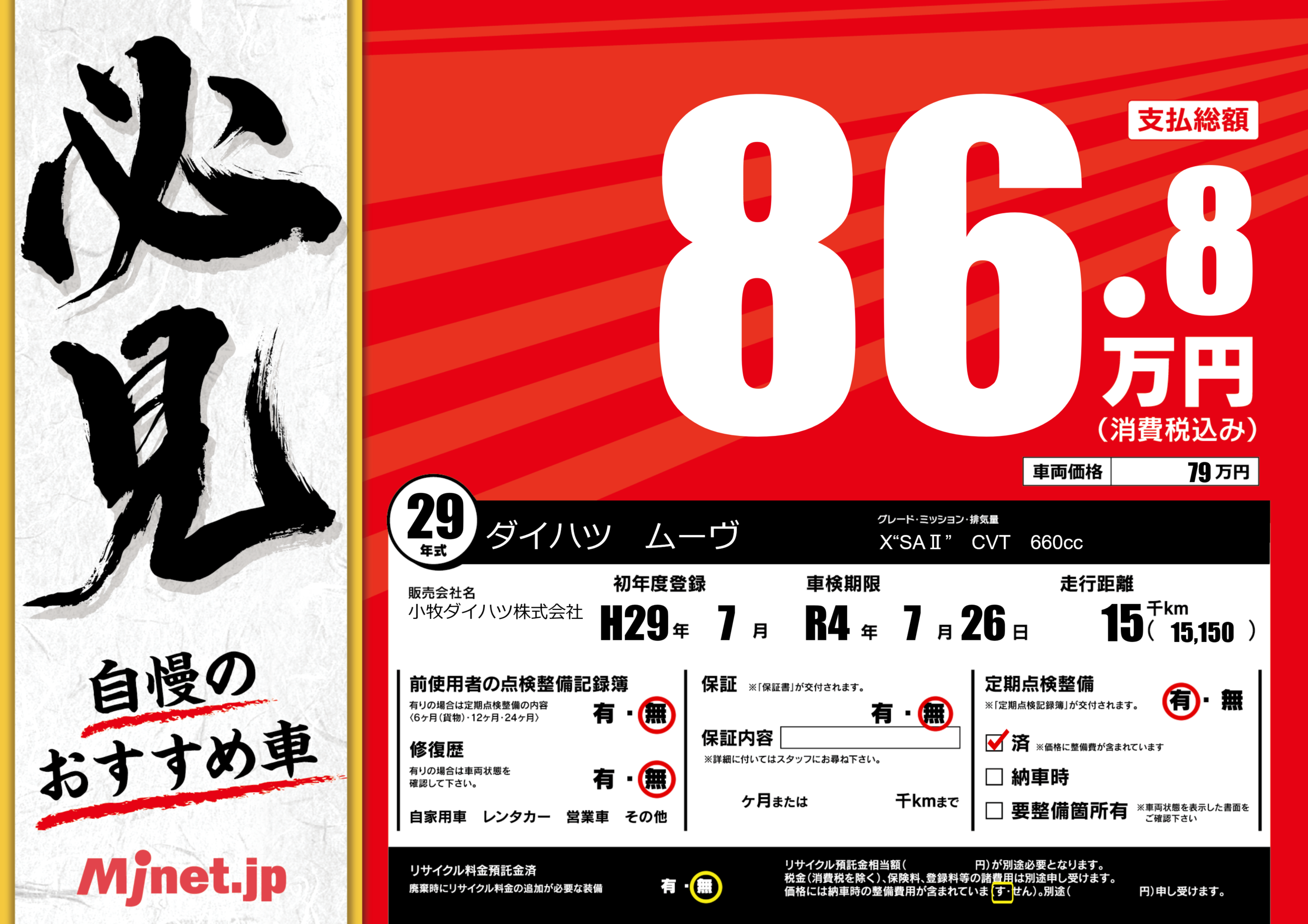 | 定期点検整備 | 定期点検整備あり 定期点検整備済み | ||