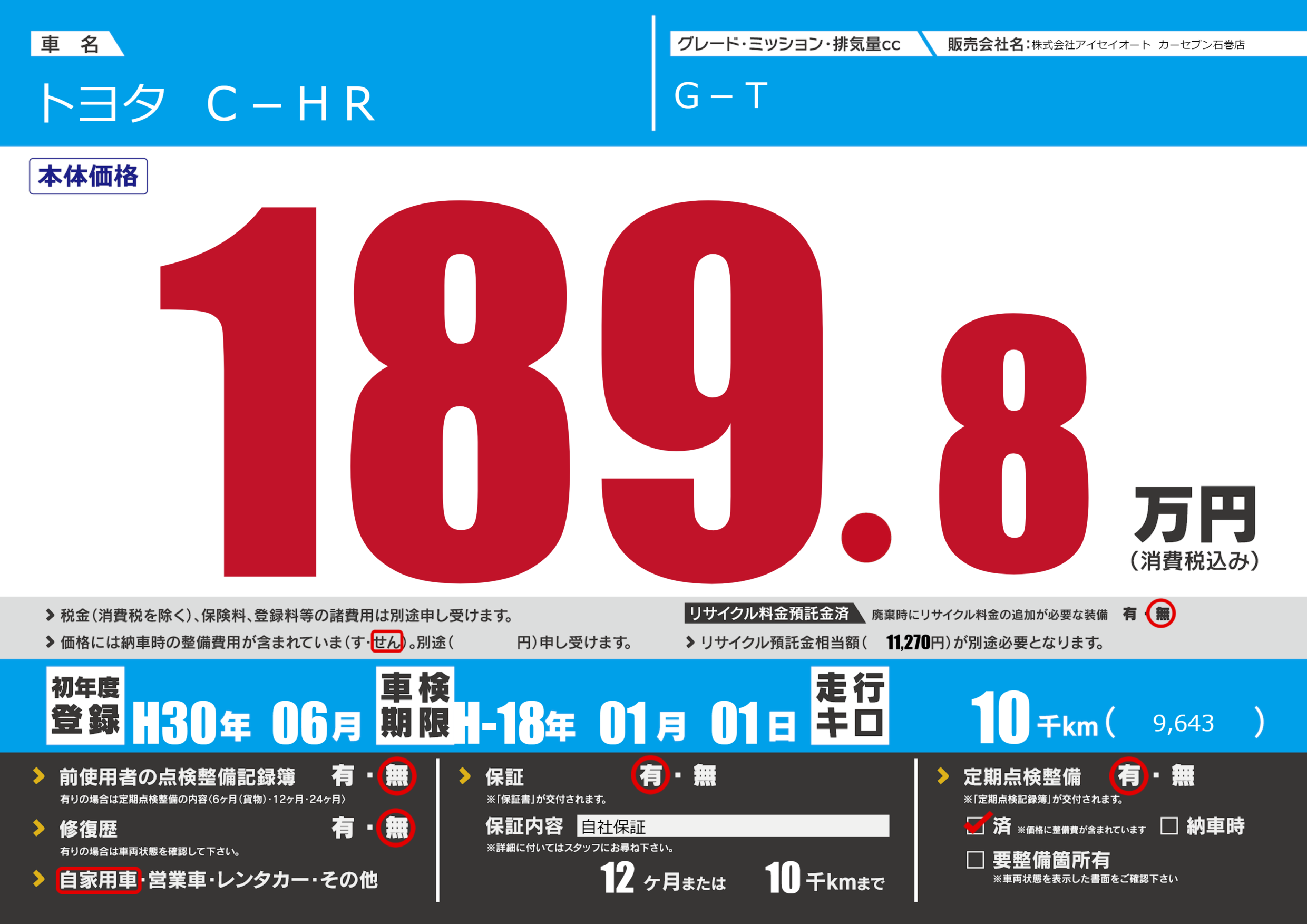 | 定期点検整備 | 定期点検整備あり 定期点検整備済み | ||