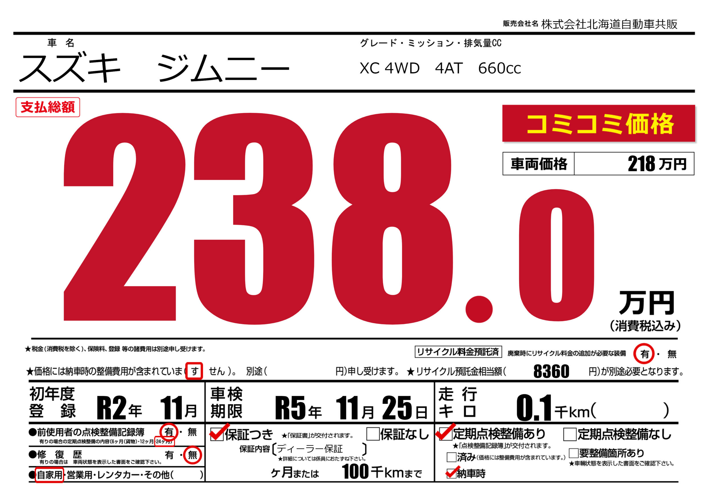 あり | 車検制限 | R5年11月25月 |